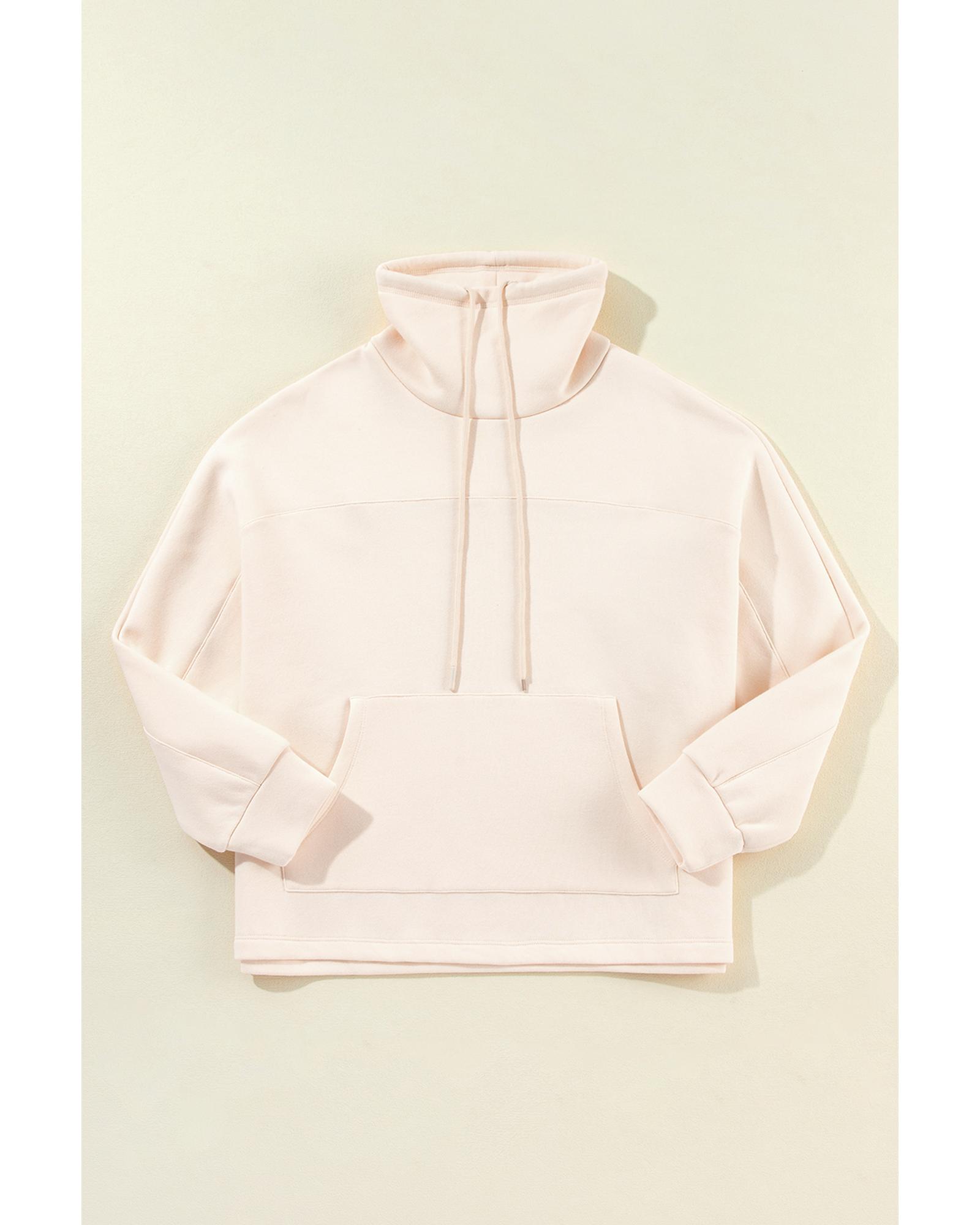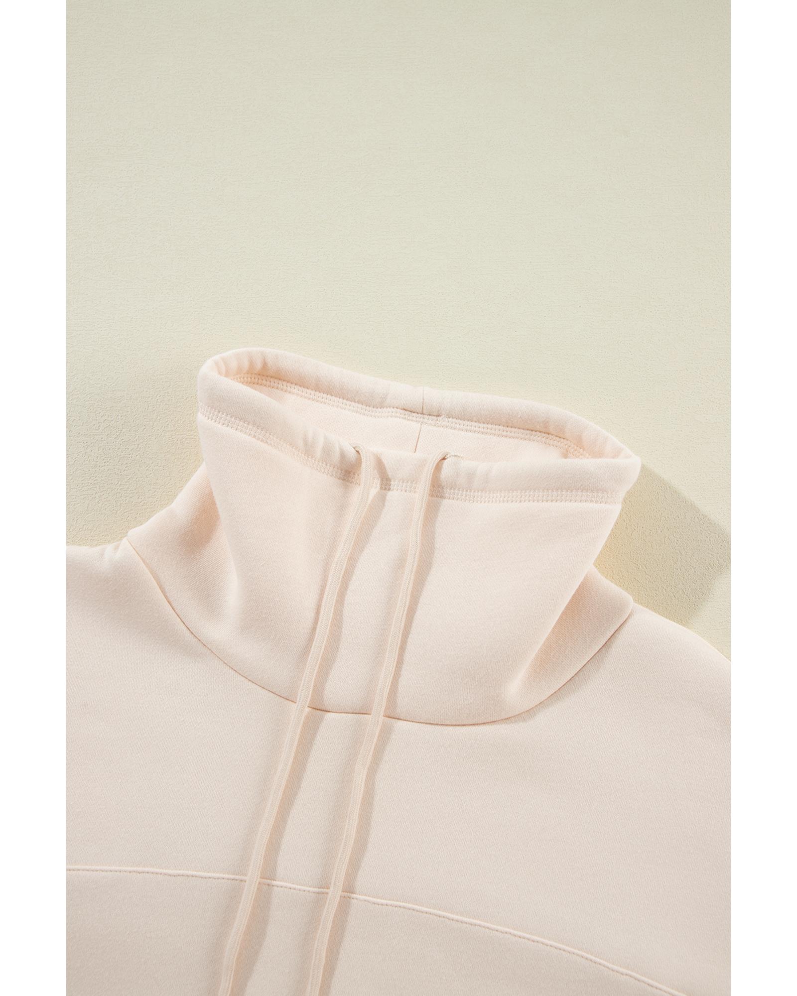 Apricot Drawstring Turtleneck Dolman Sleeve Sweatshirt – M