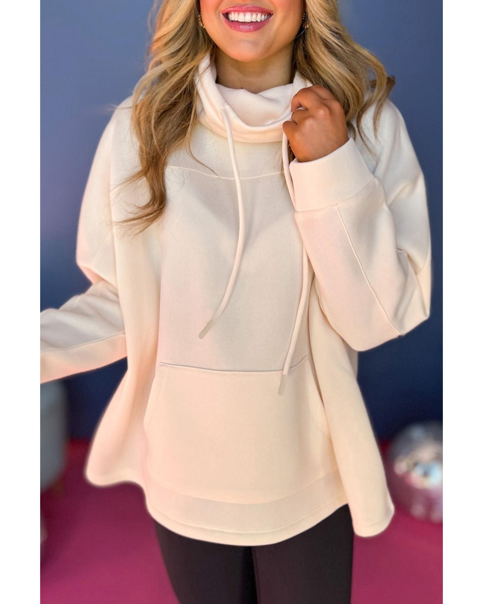 Apricot Drawstring Turtleneck Dolman Sleeve Sweatshirt – S