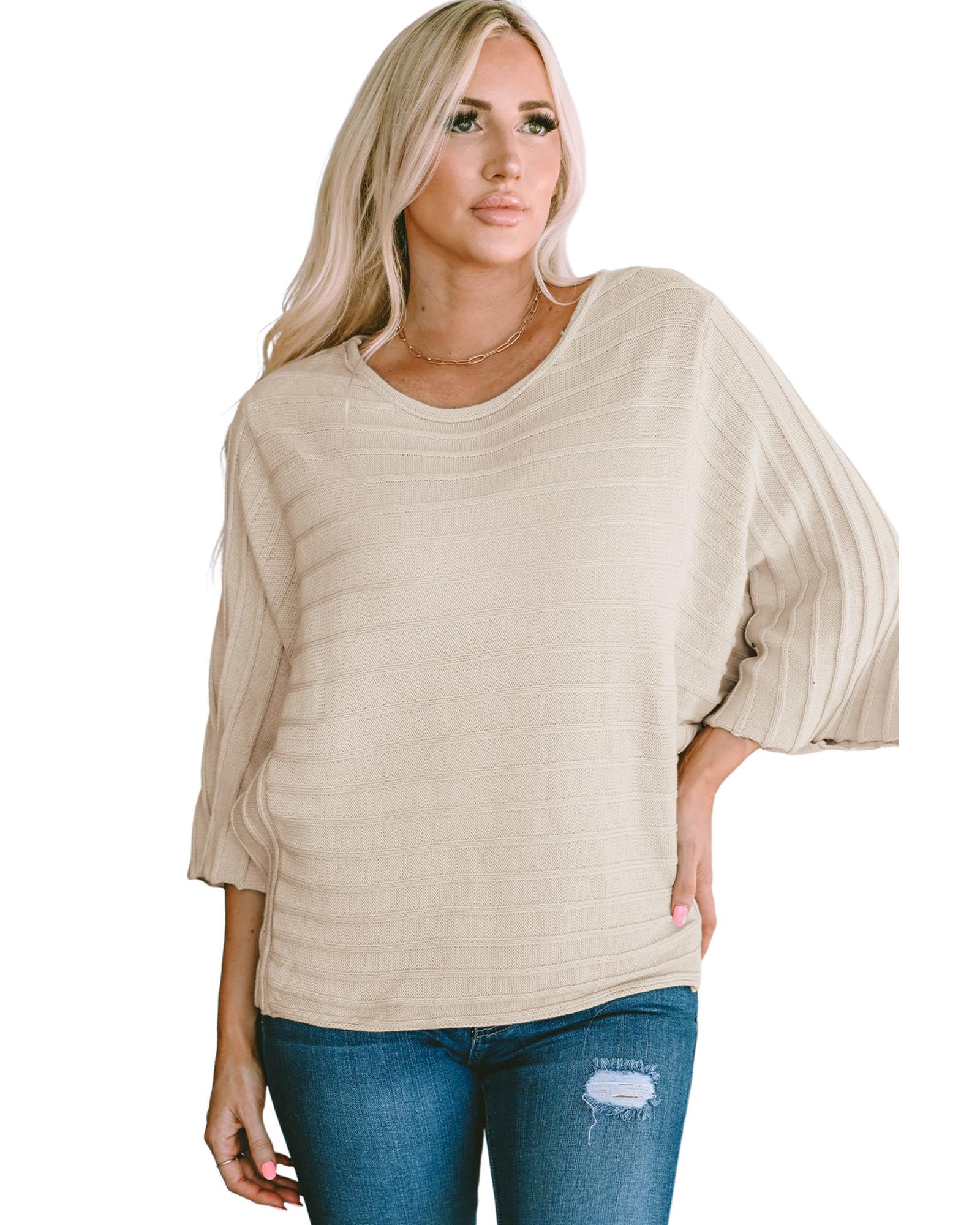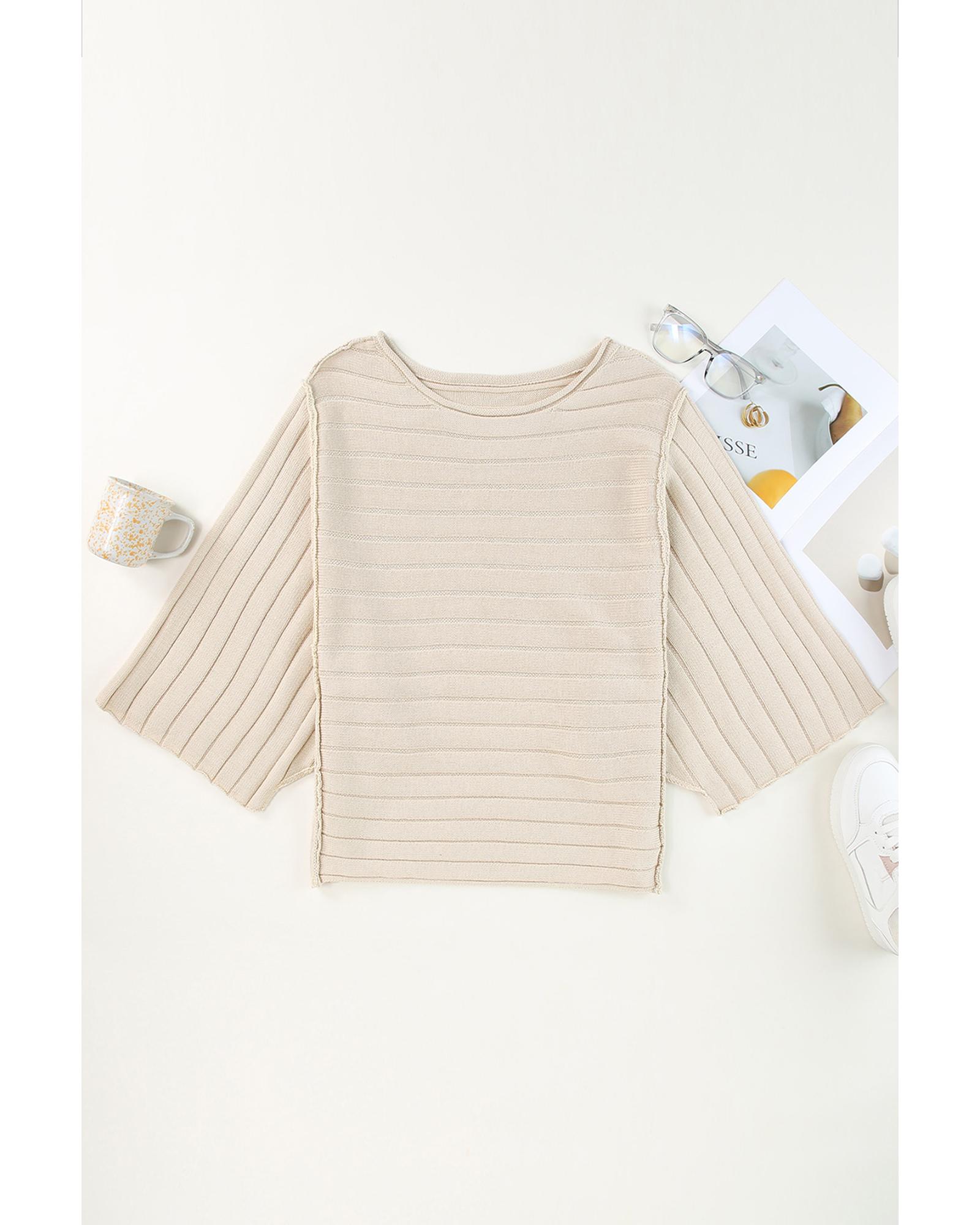 Apricot Exposed Seam Ribbed Knit Dolman Sweater – L