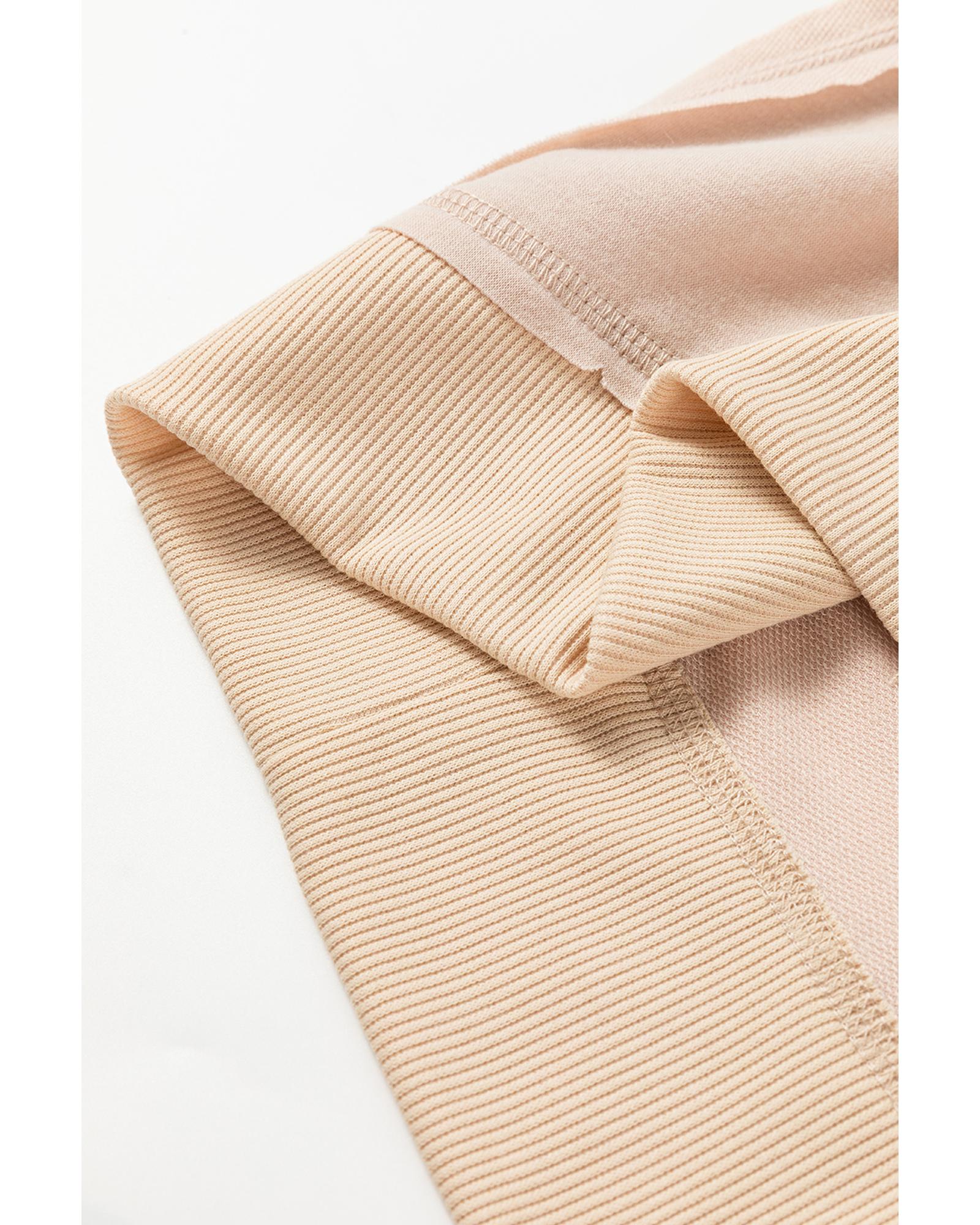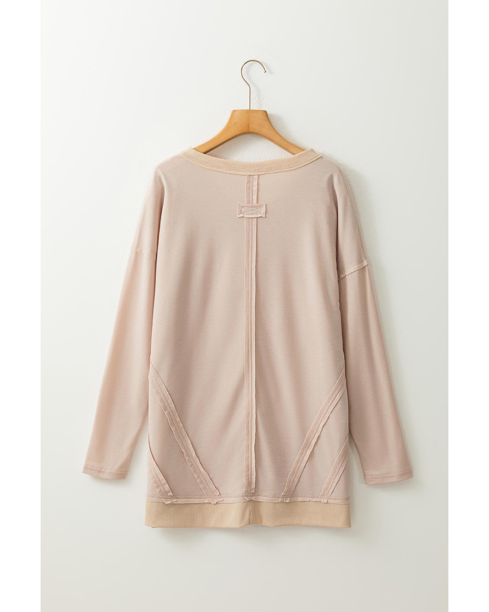 Apricot Exposed Seam V Neck Split Hem Tunic Top – M