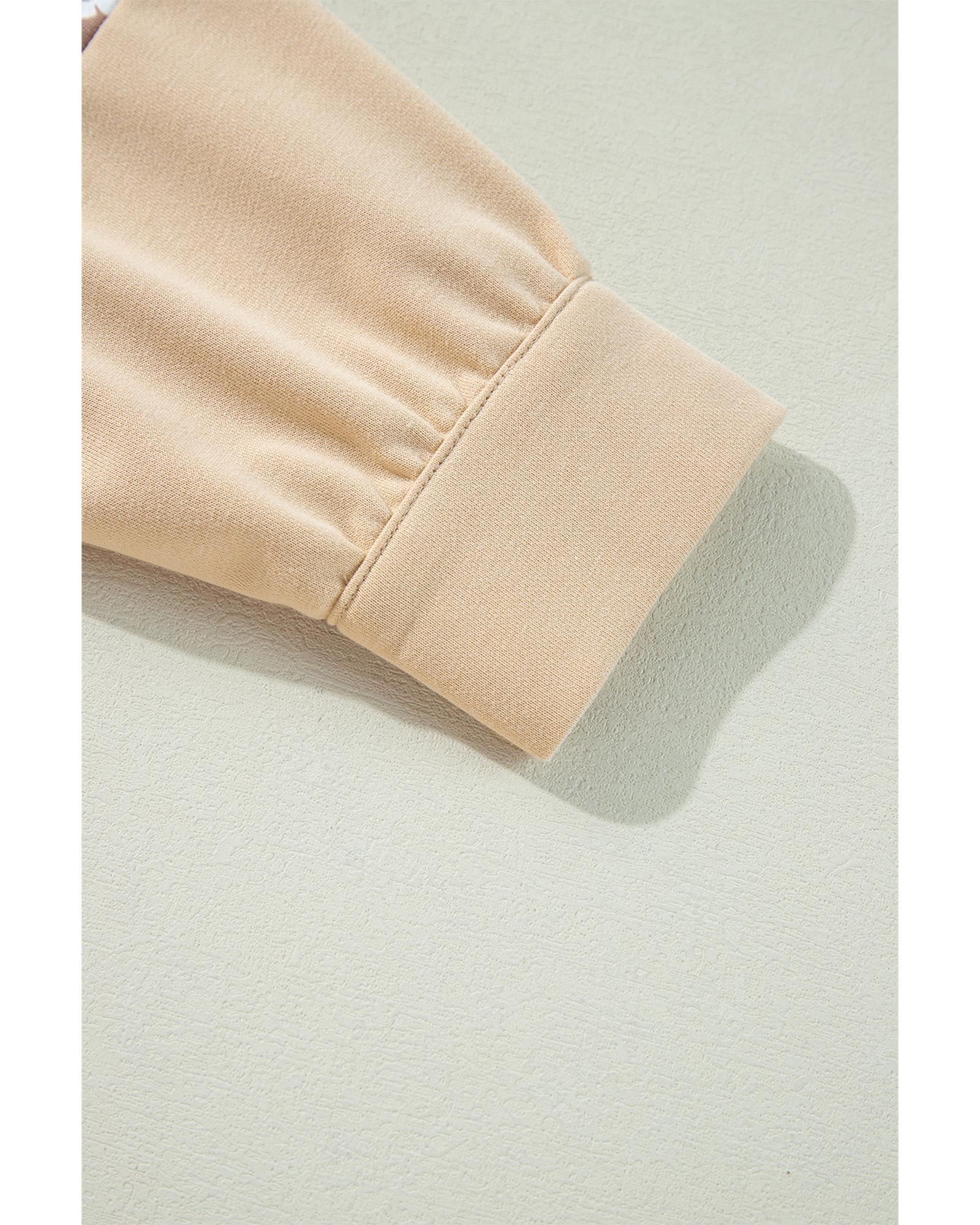 Apricot Floral Patchwork Star Pattern Drawstring Hoodie – S
