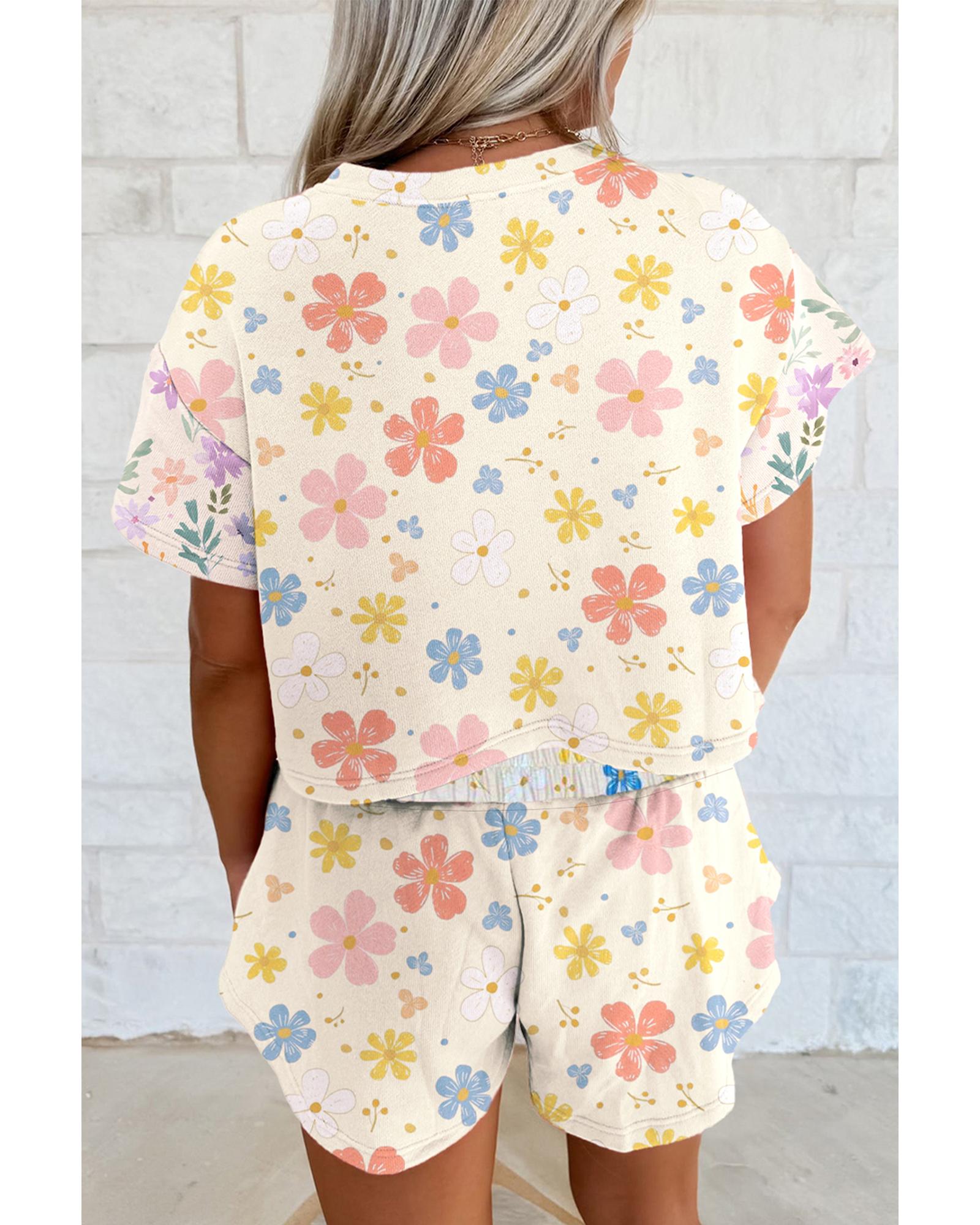 Apricot Floral Print Crop Top Wide Leg Short Set – L