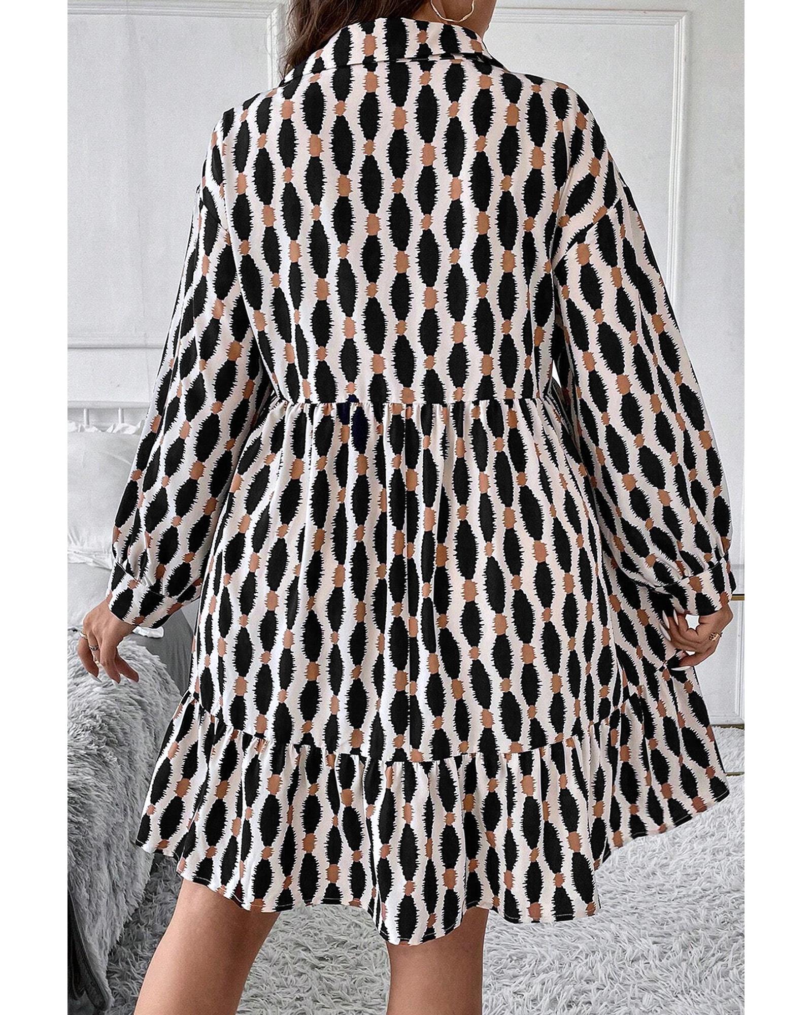 Apricot Geometric Print Collared V Neck Plus Size Mini Dress – 1X