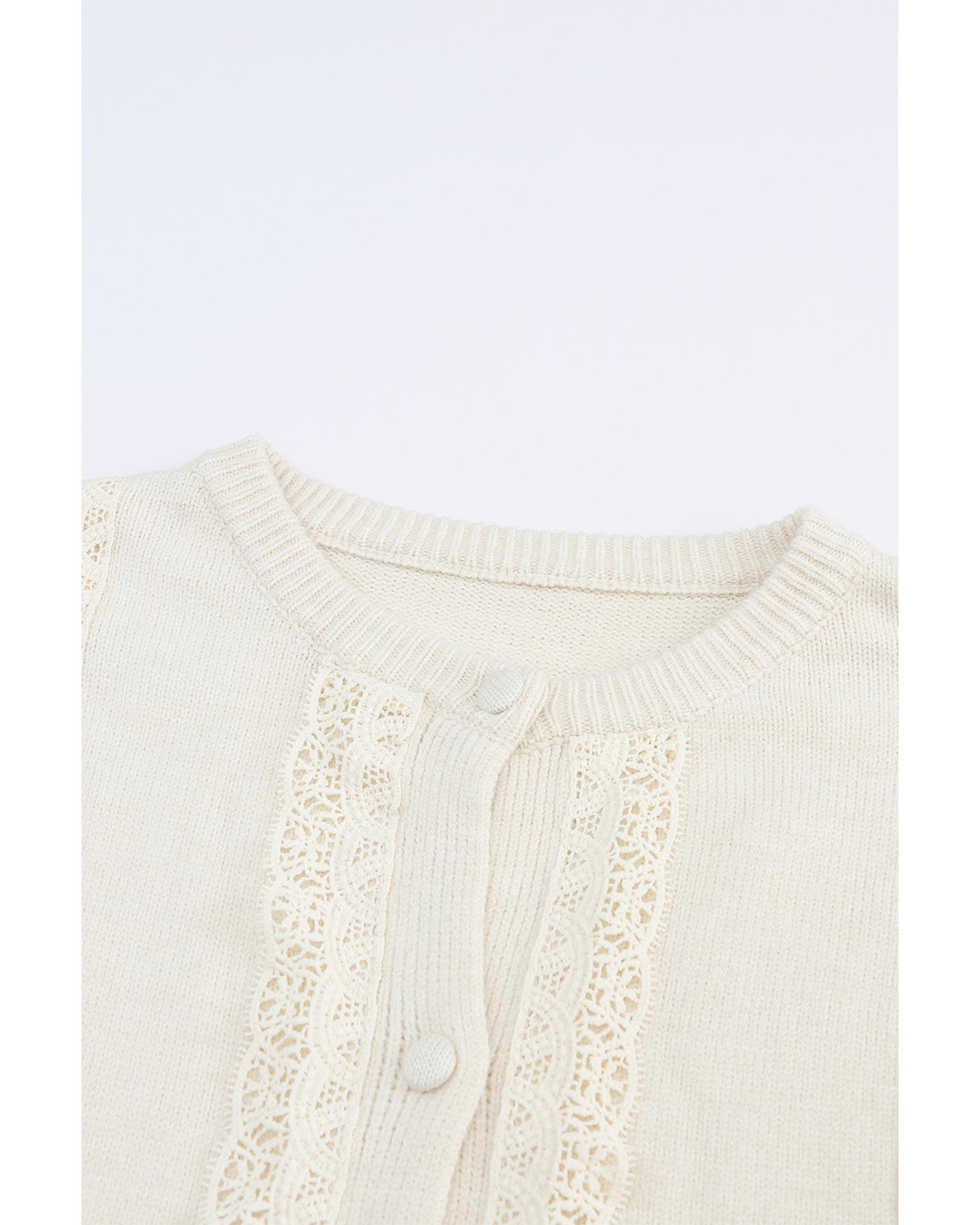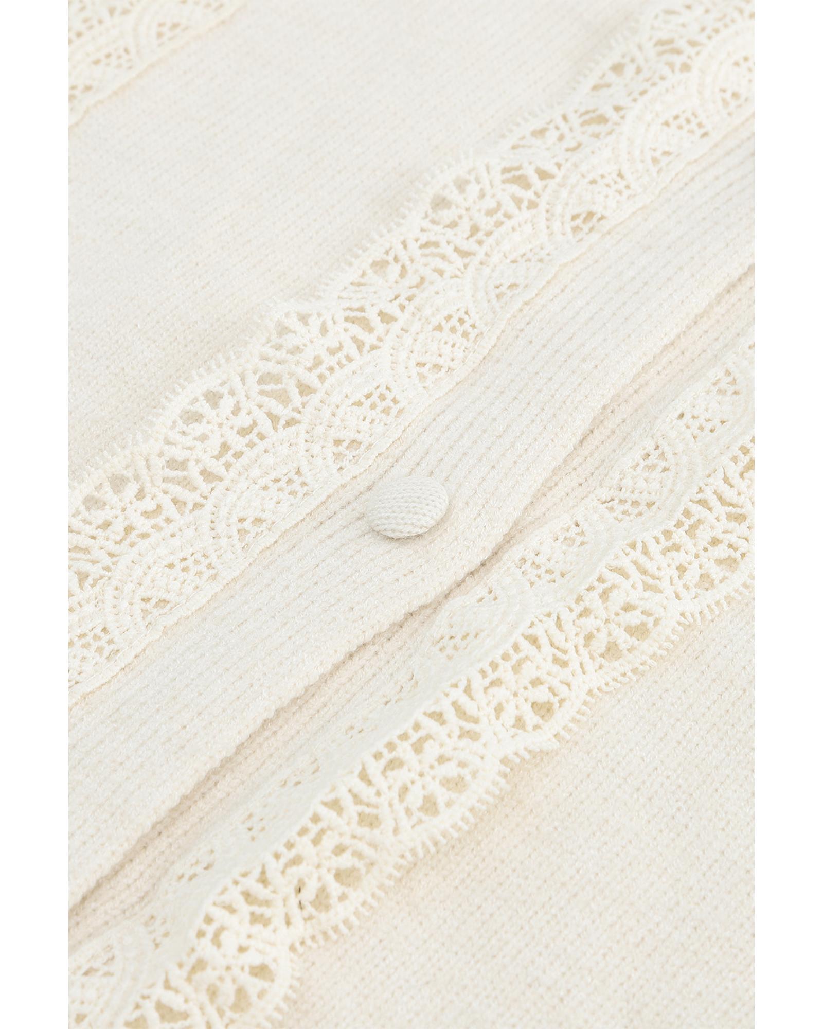 Apricot Lace Trim Ribbed Round Neck Button Up Cardigan – L