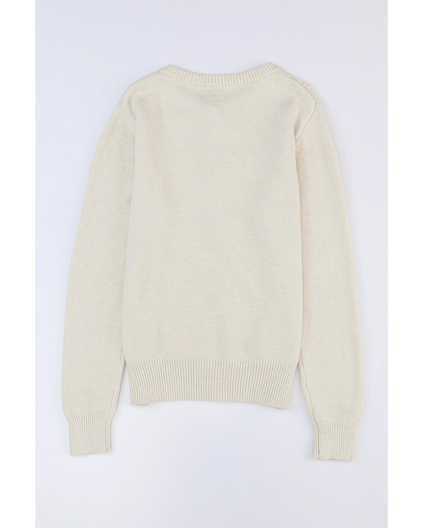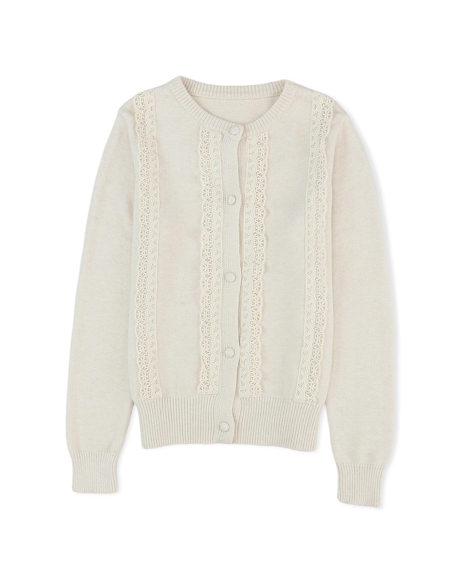 Apricot Lace Trim Ribbed Round Neck Button Up Cardigan – M