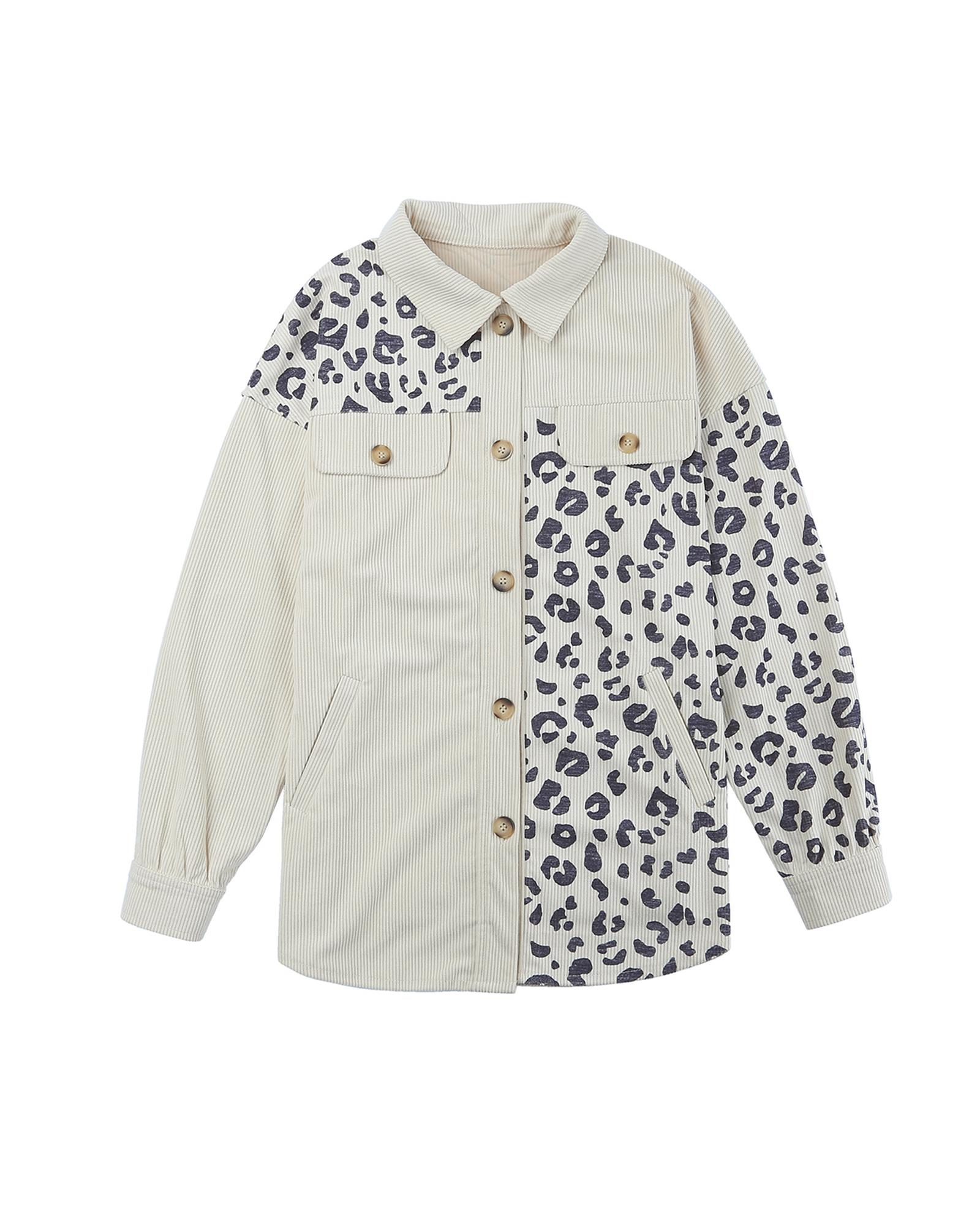 - Womens Leopard Print Detail Pocketed Corduroy Jacket