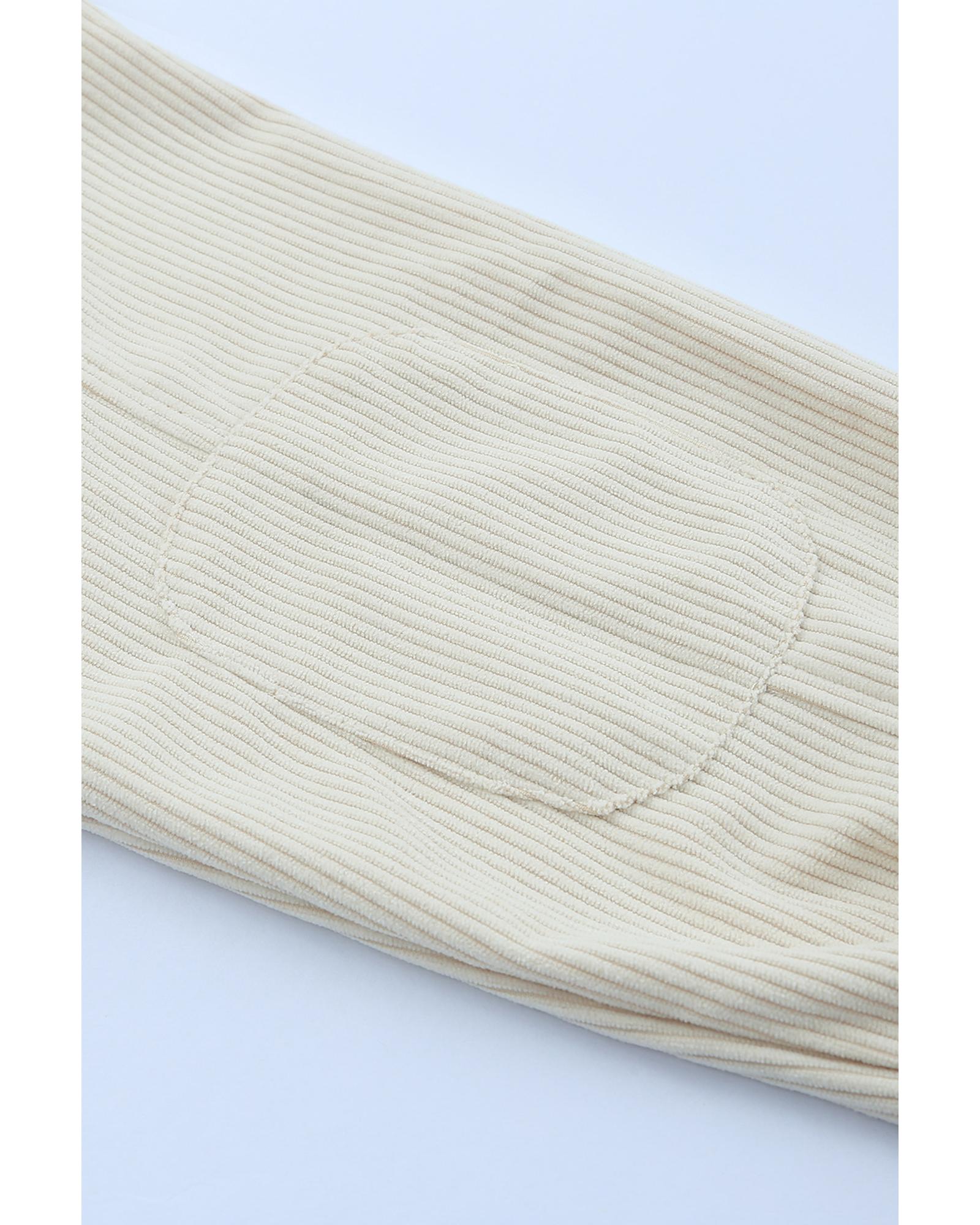 Apricot Leopard Print Detail Pocketed Corduroy Jacket – S
