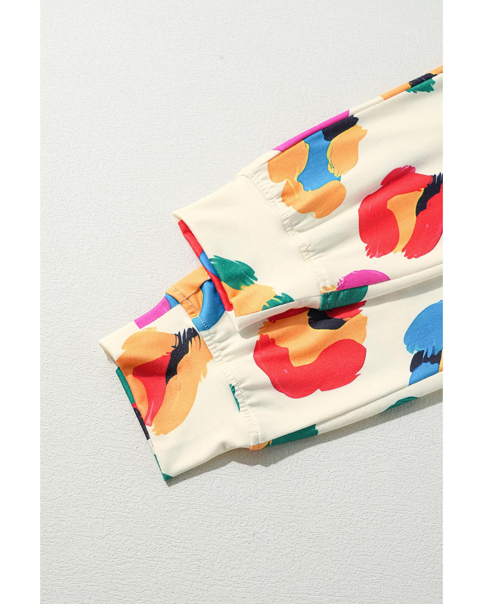 Apricot Leopard Print Long Sleeve Top and Skinny Pants Lounge Set – S