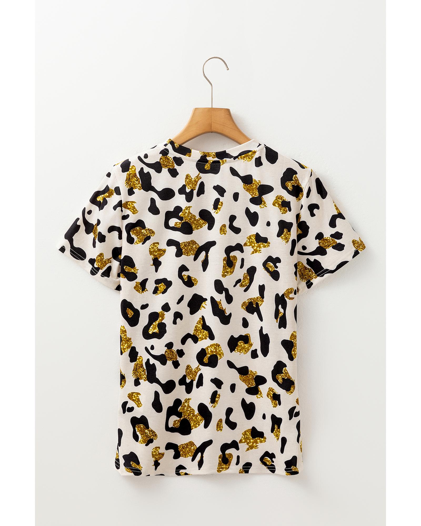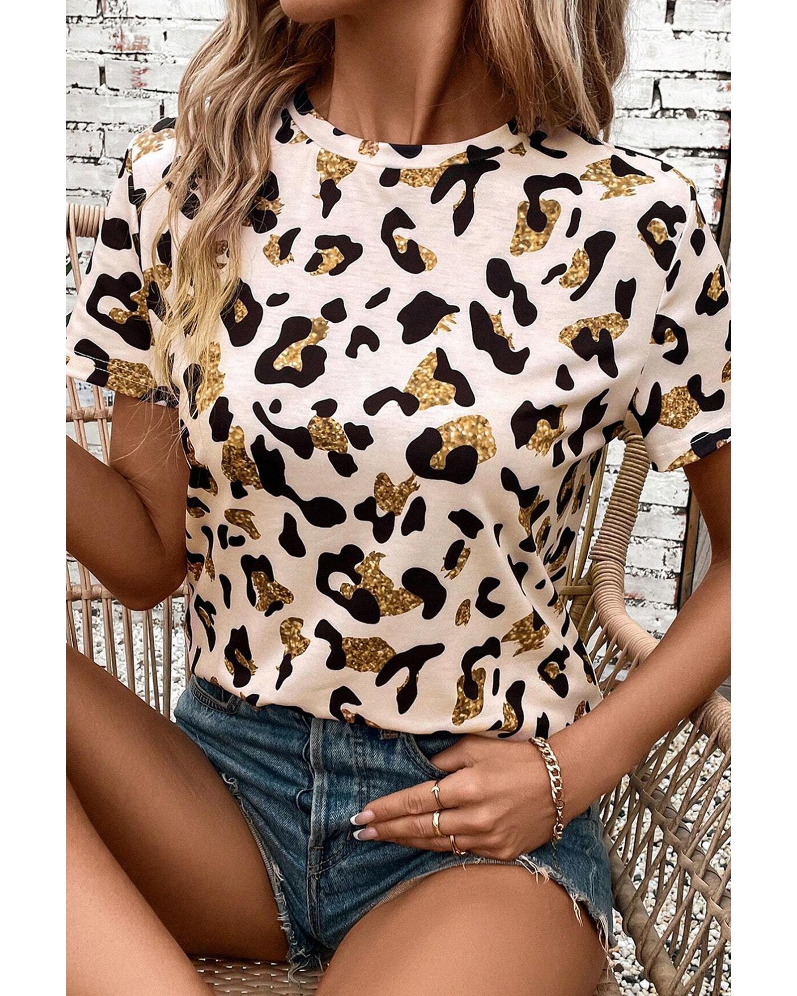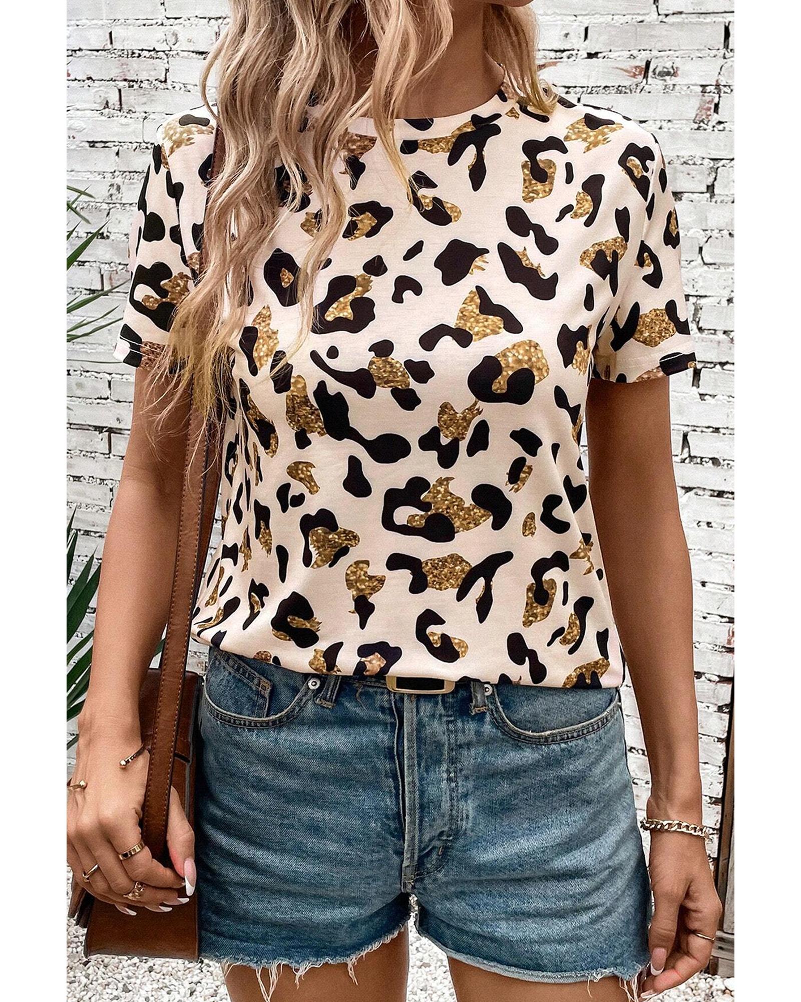 Apricot Leopard Print Round Neck Casual T Shirt – M
