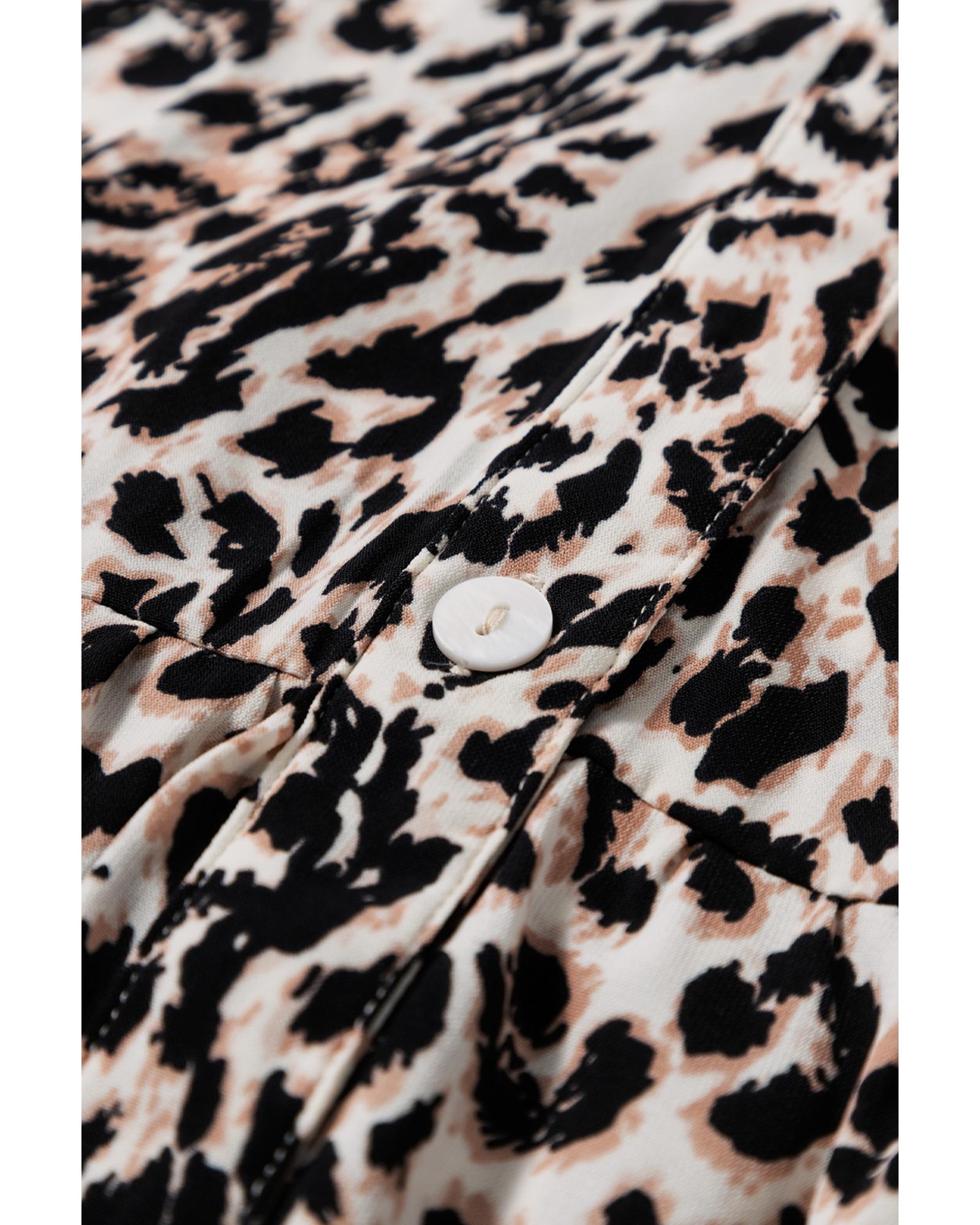 Apricot Leopard Print Tiered Wide Sleeve Maxi Dress – S