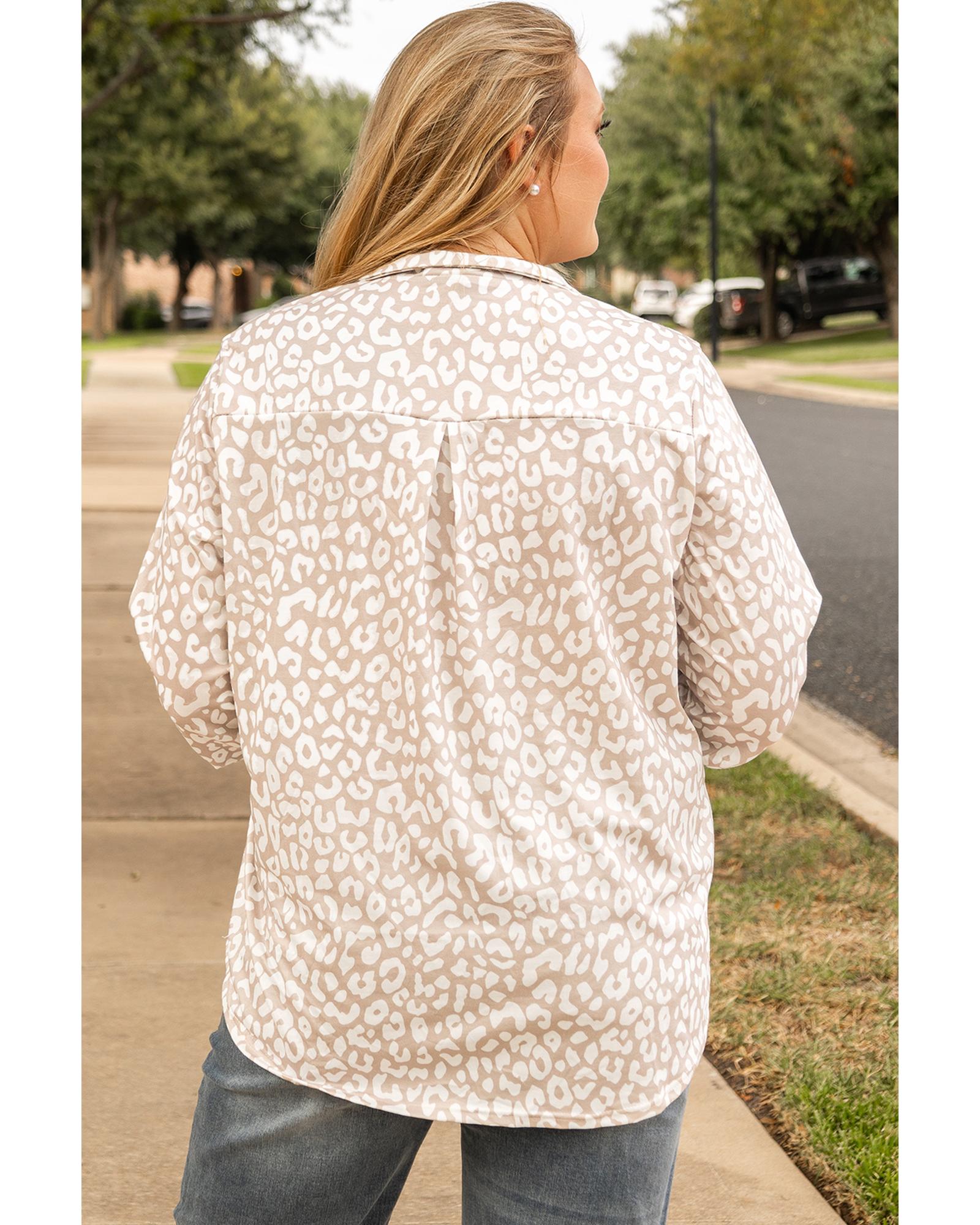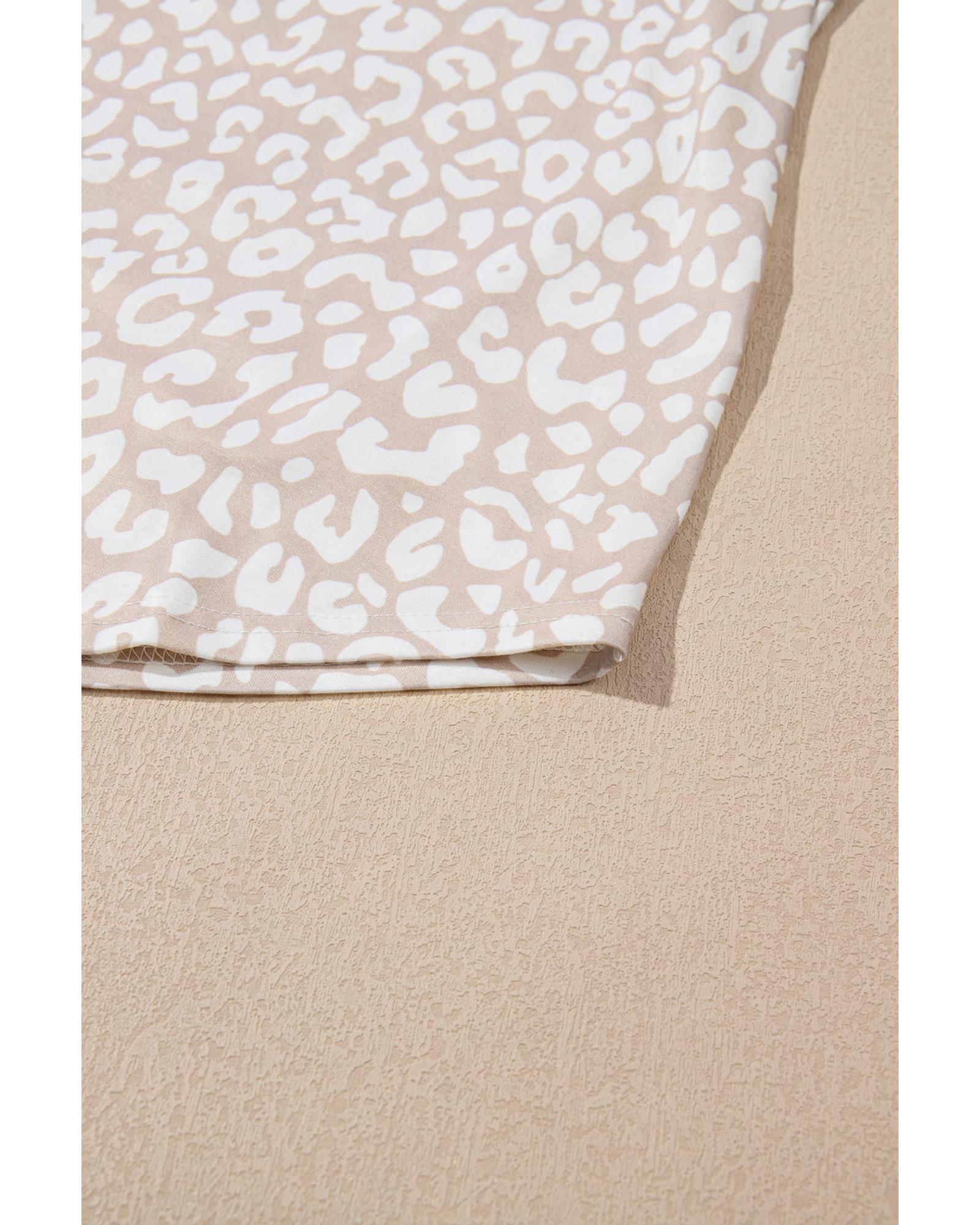 Apricot Leopard Tab Sleeve V Neck Plus Size Top - 3X