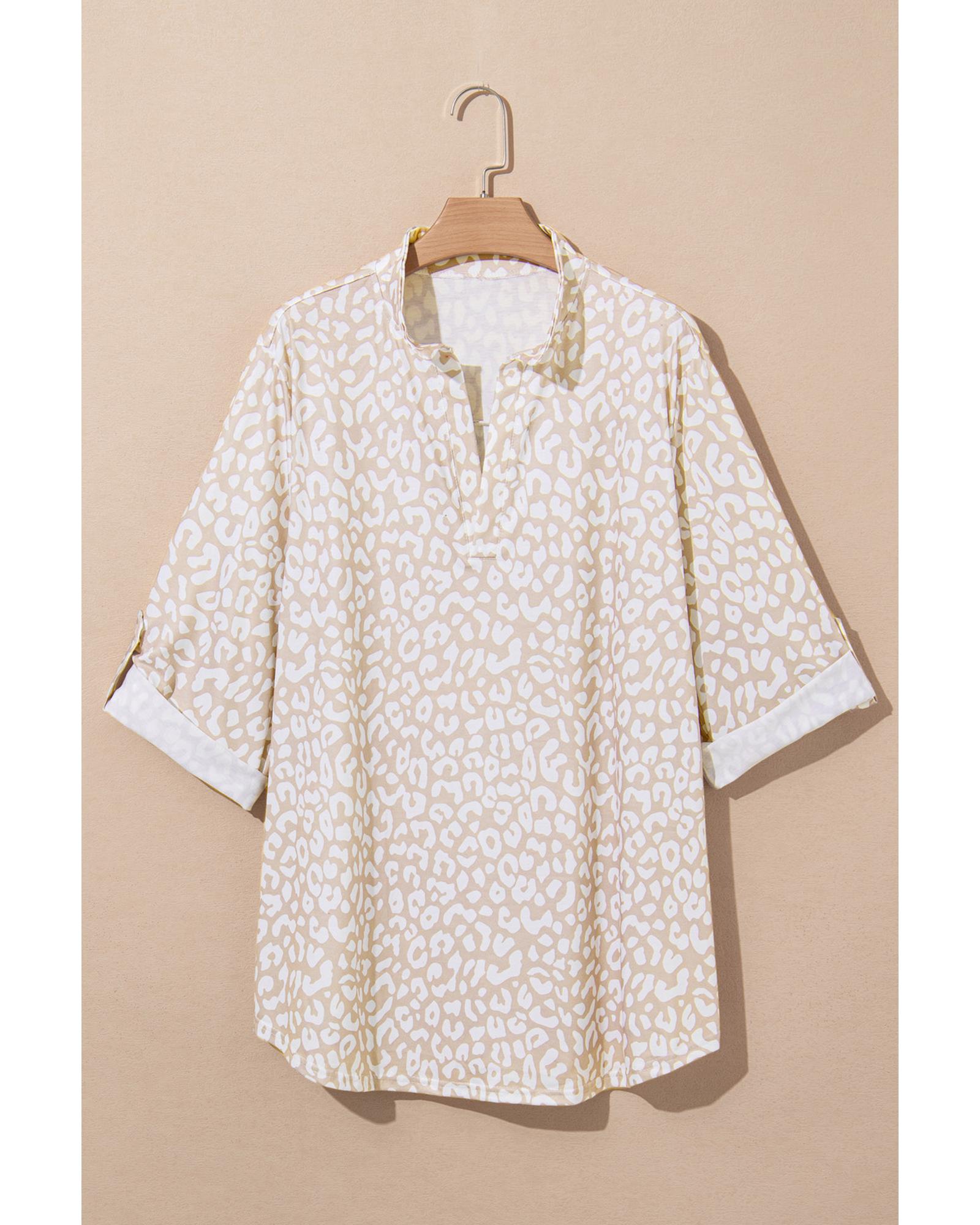 Apricot Leopard Tab Sleeve V Neck Plus Size Top – 2X