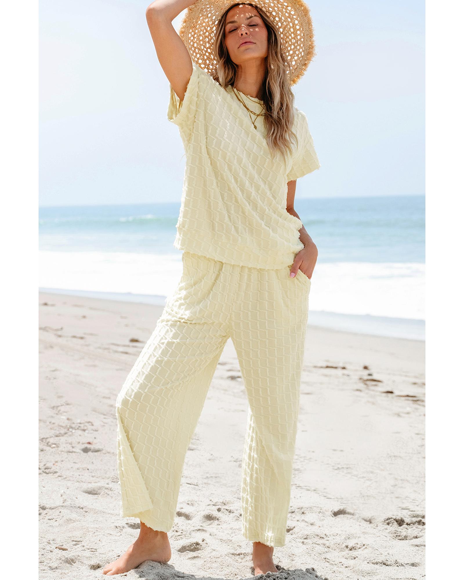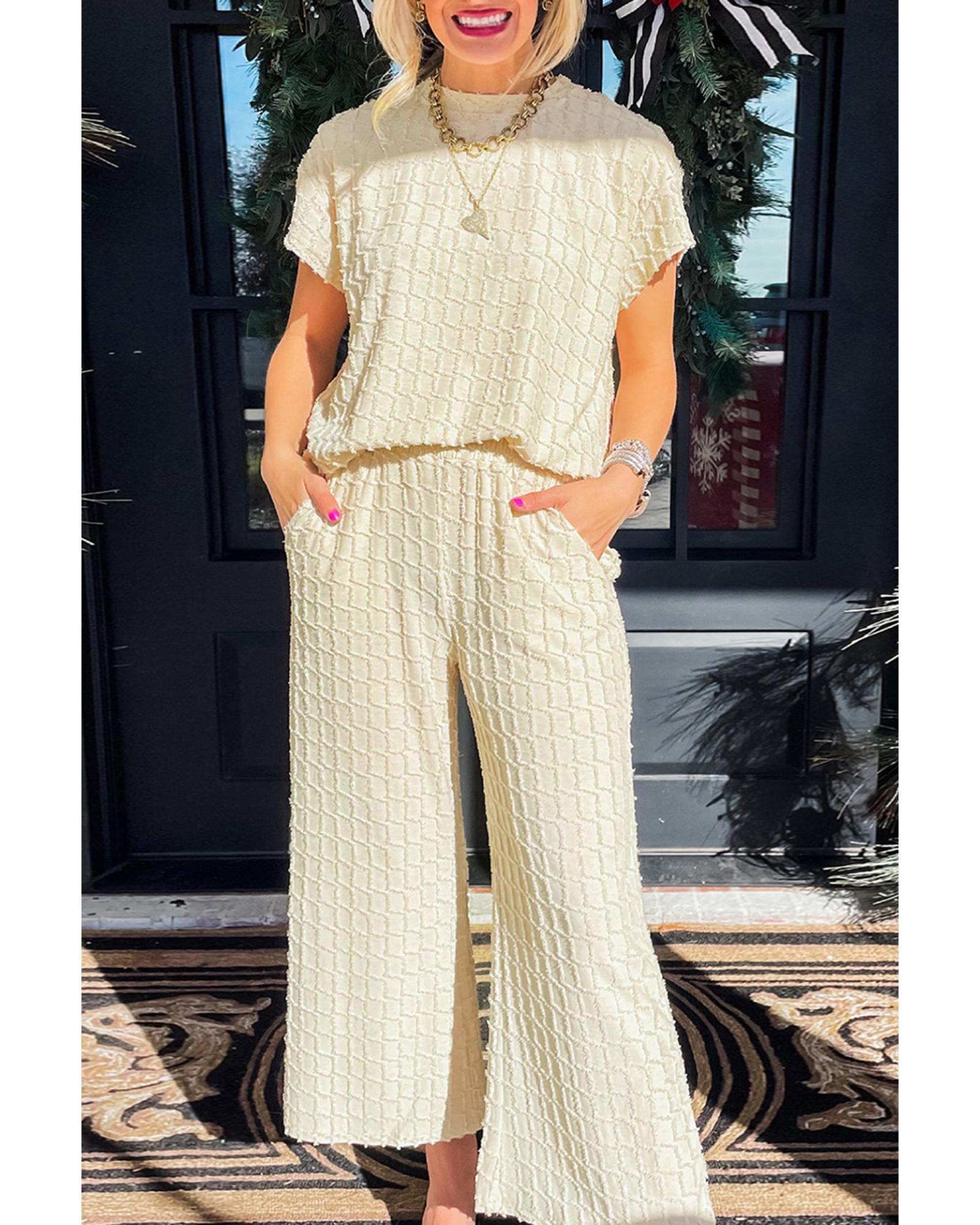 Apricot Metallic Lattice Textured Casual Two Piece Set – L