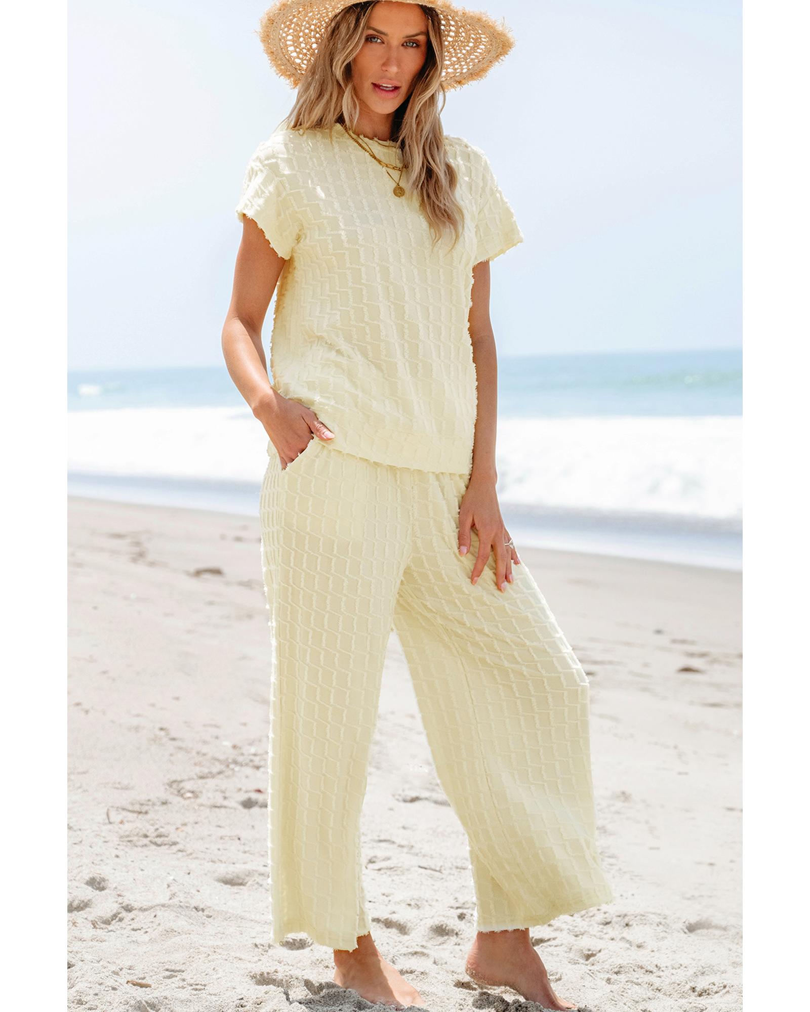 Apricot Metallic Lattice Textured Casual Two Piece Set – M