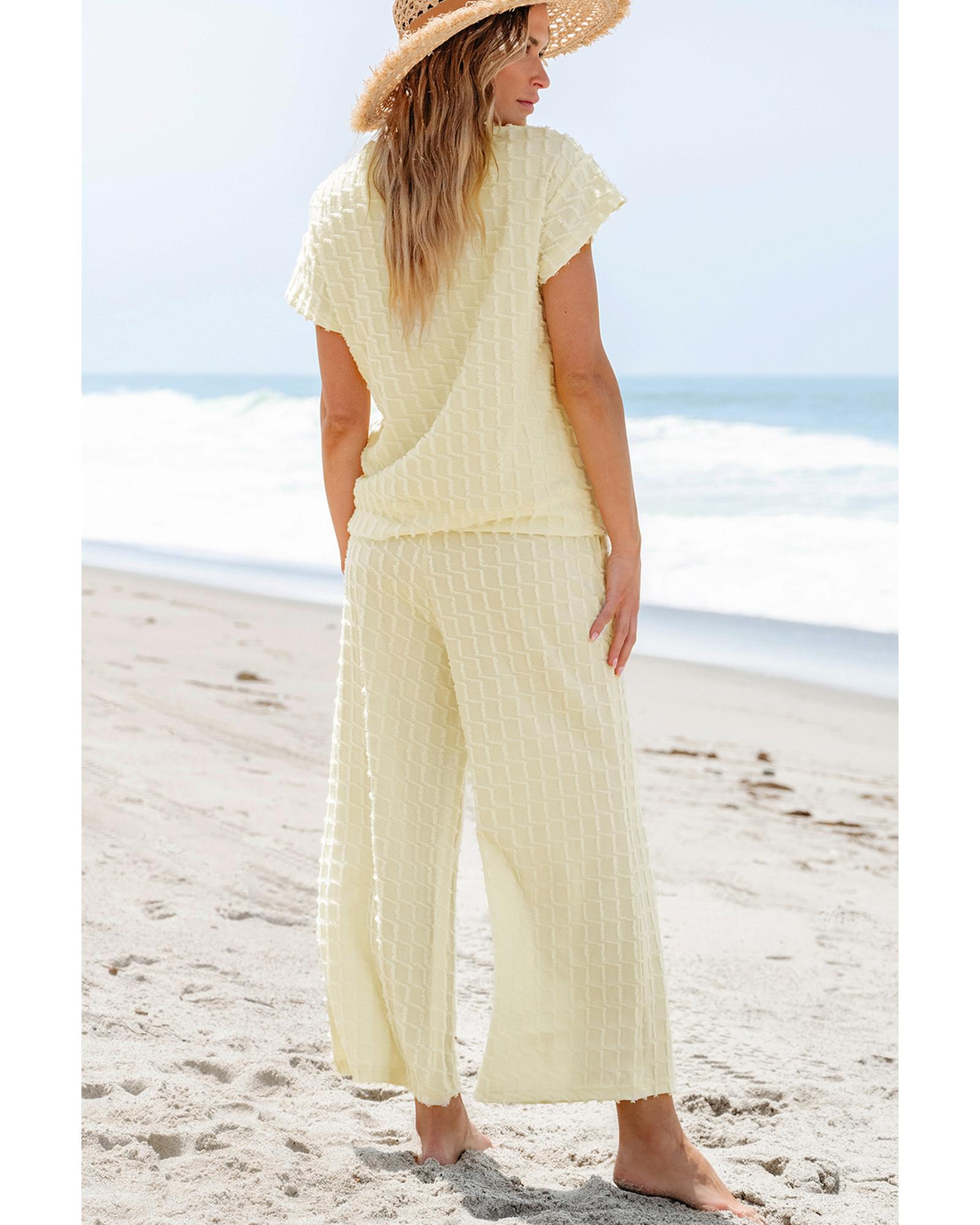 Apricot Metallic Lattice Textured Casual Two Piece Set – S