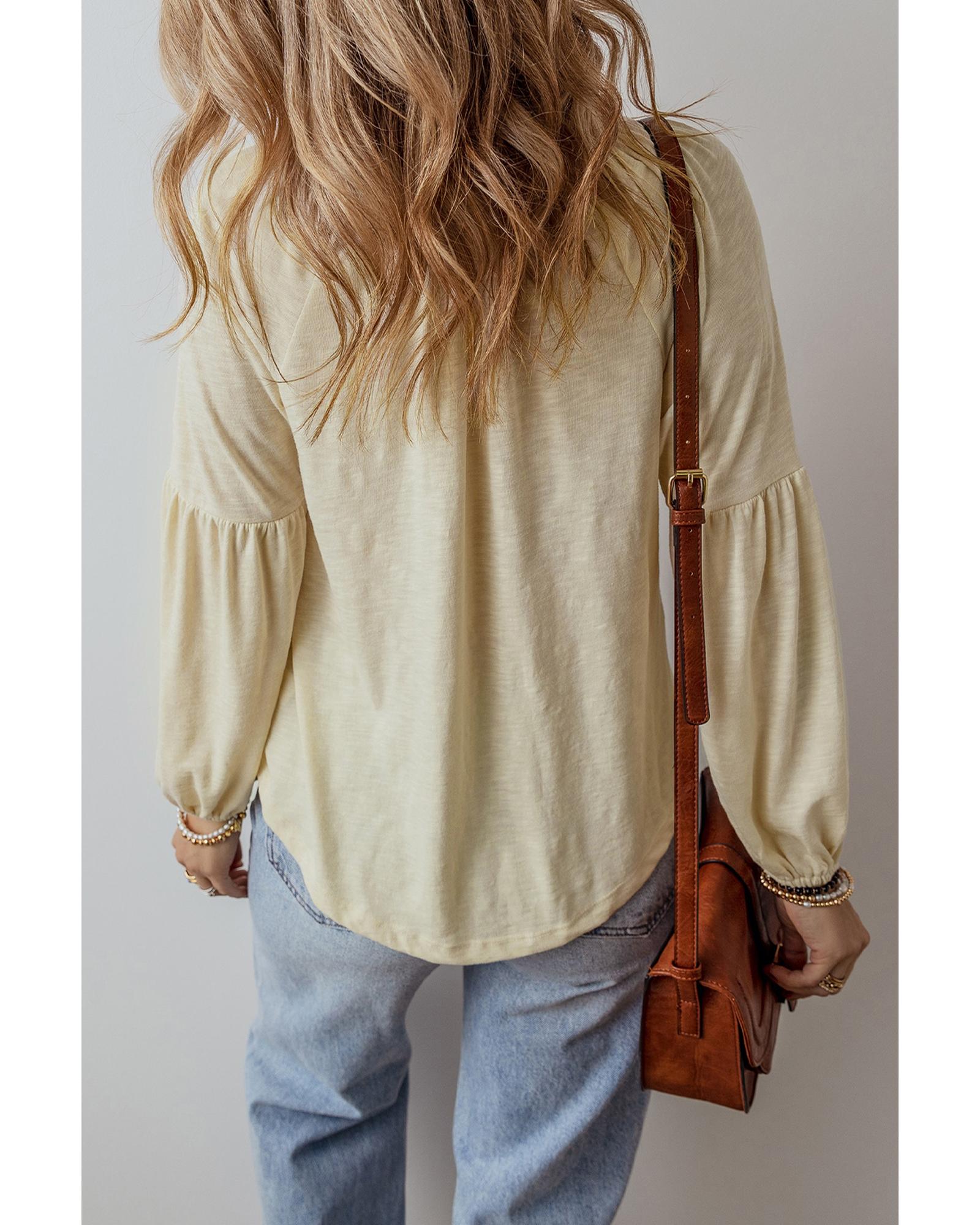 Apricot Paisley Floral Embroidered Notch V Neck Blouse – XL