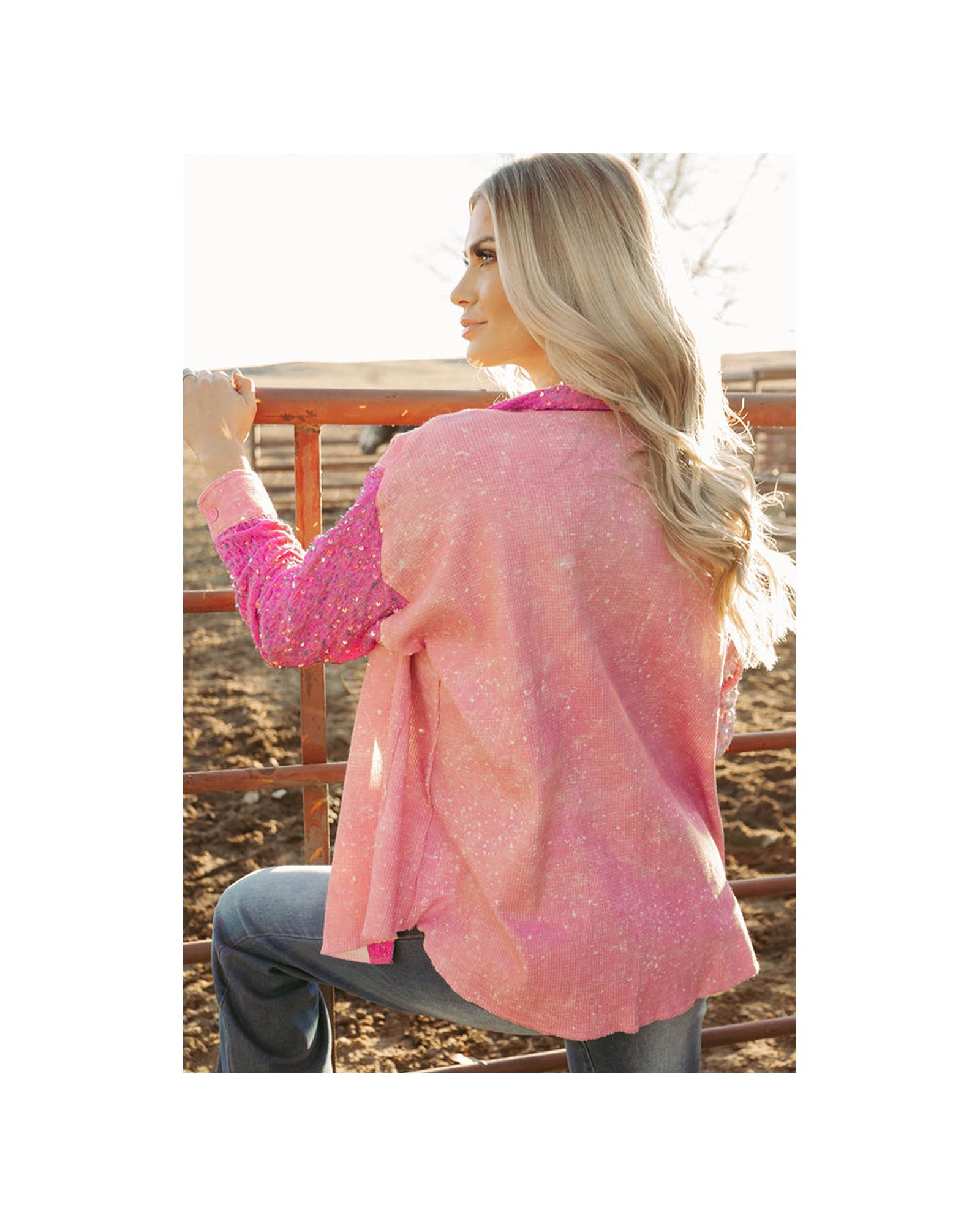 Apricot Pink Mineral Wash Sequin Patchwork Flap Pocket Shacket – XL