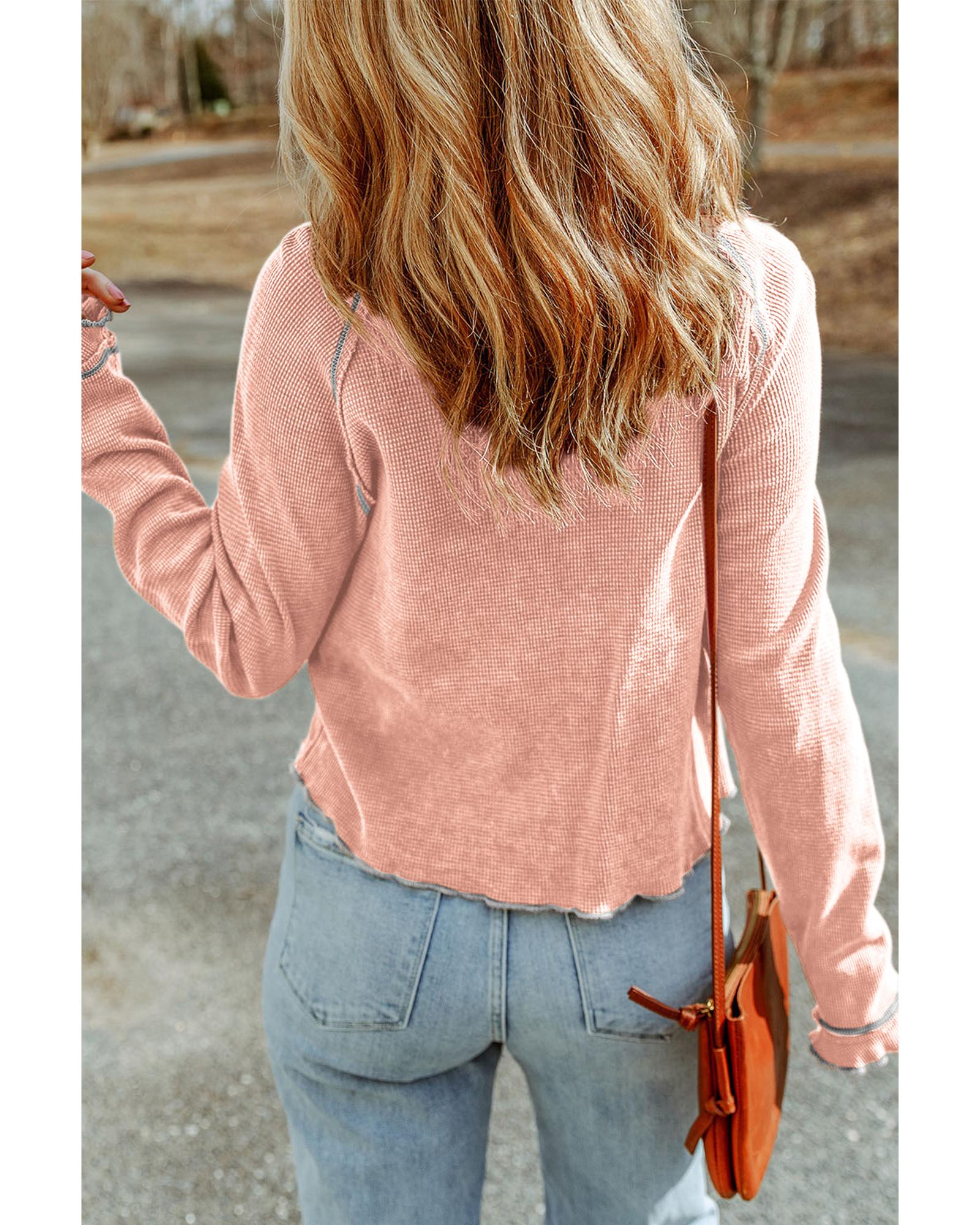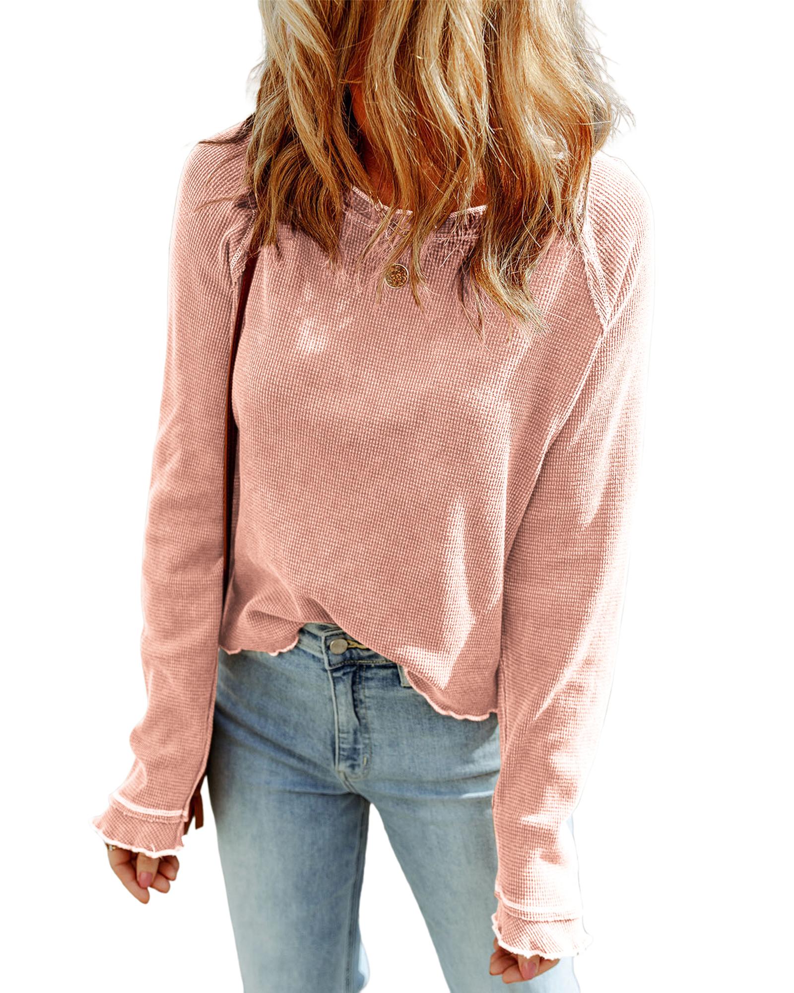 Apricot Pink Textured Round Neck Long Sleeve Top – L