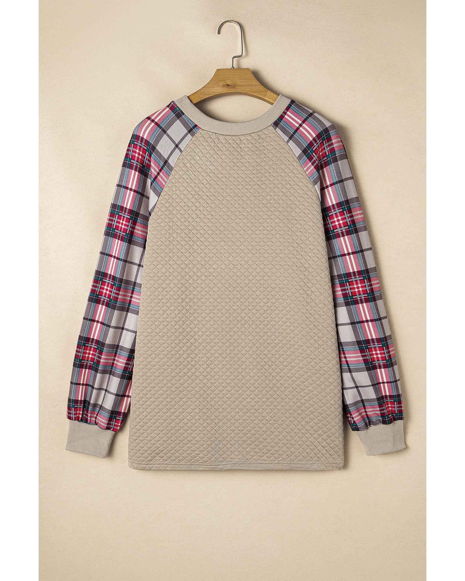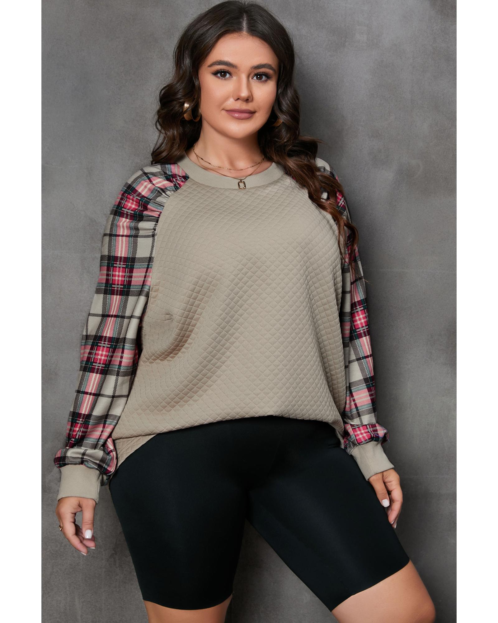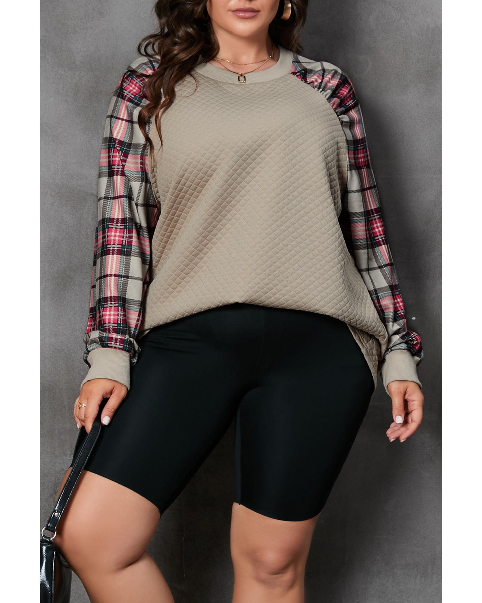 Apricot Plus Size Plaid Raglan Sleeve Crew Neck Sweatshirt – 1X