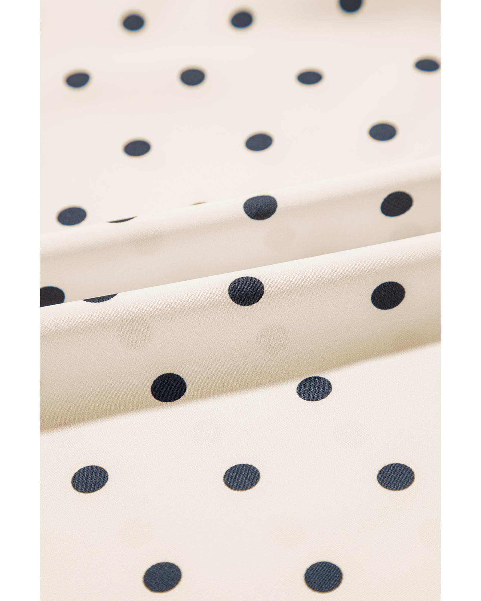 Apricot Polka Dot Print Frilled Collar Lantern Sleeve Blouse – M