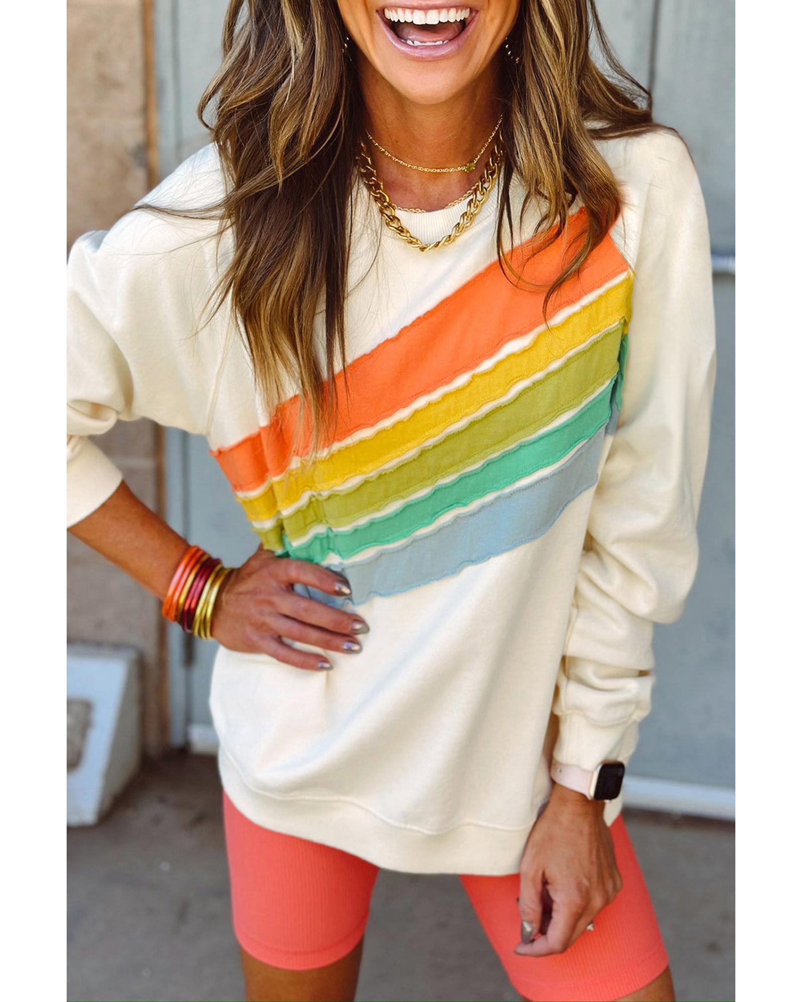 Apricot Rainbow Colorblock Striped Pullover Sweatshirt – M