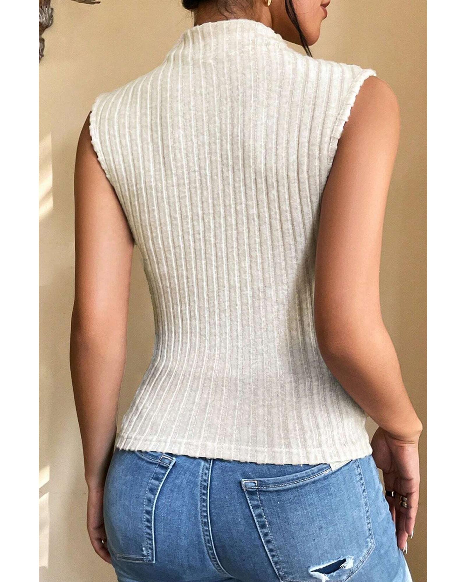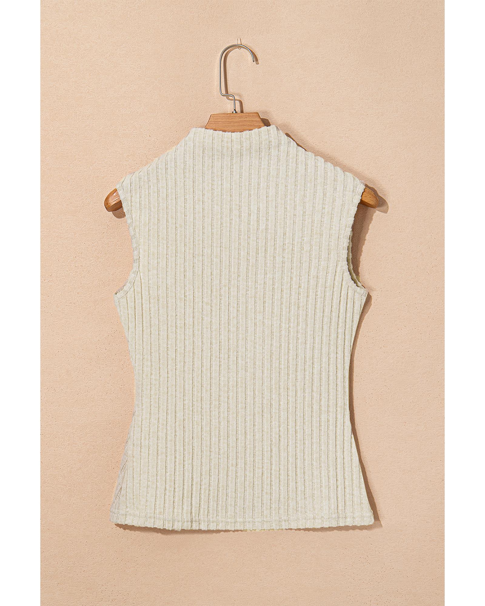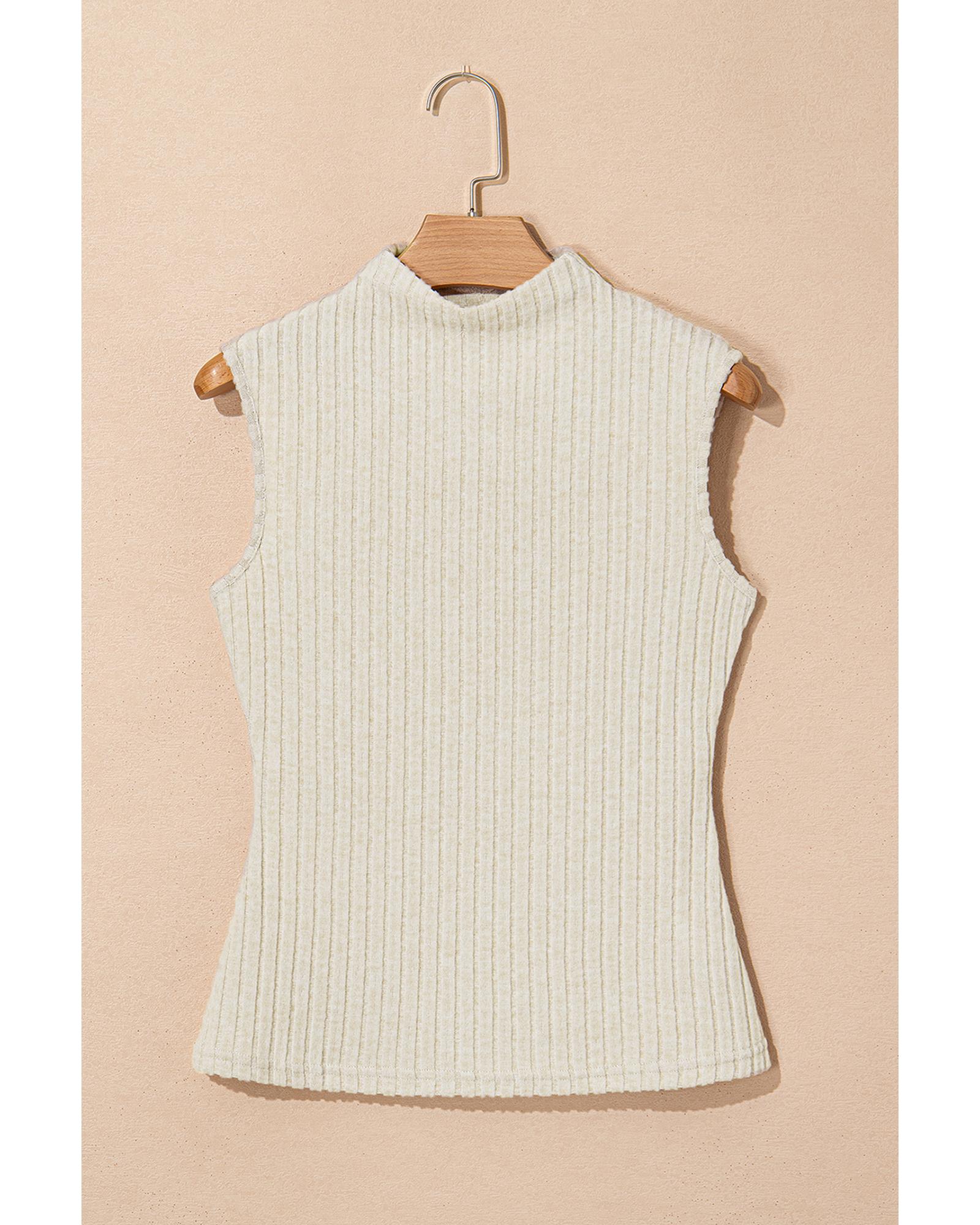Apricot Ribbed Knit Mock Neck Tank Top – L