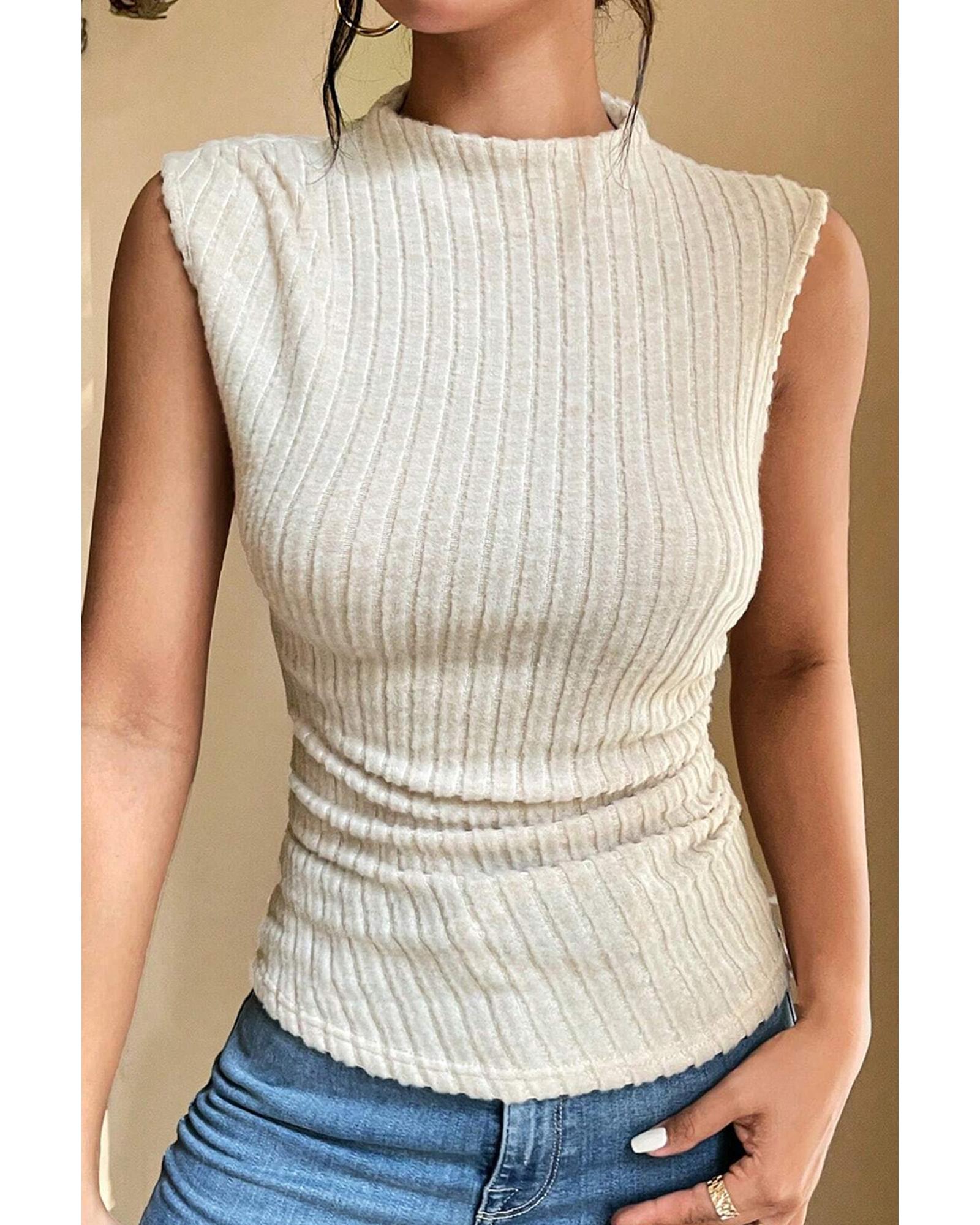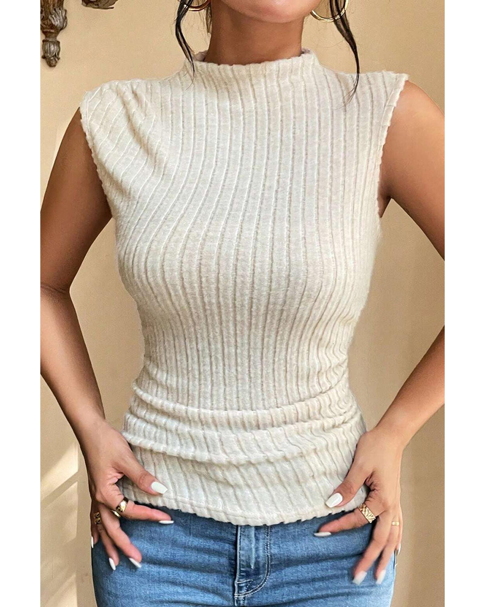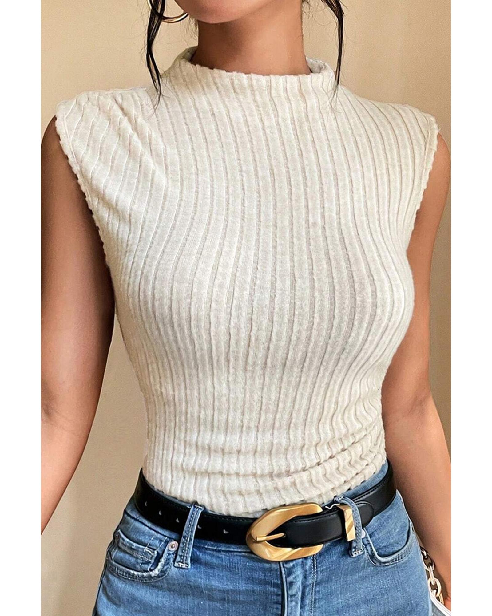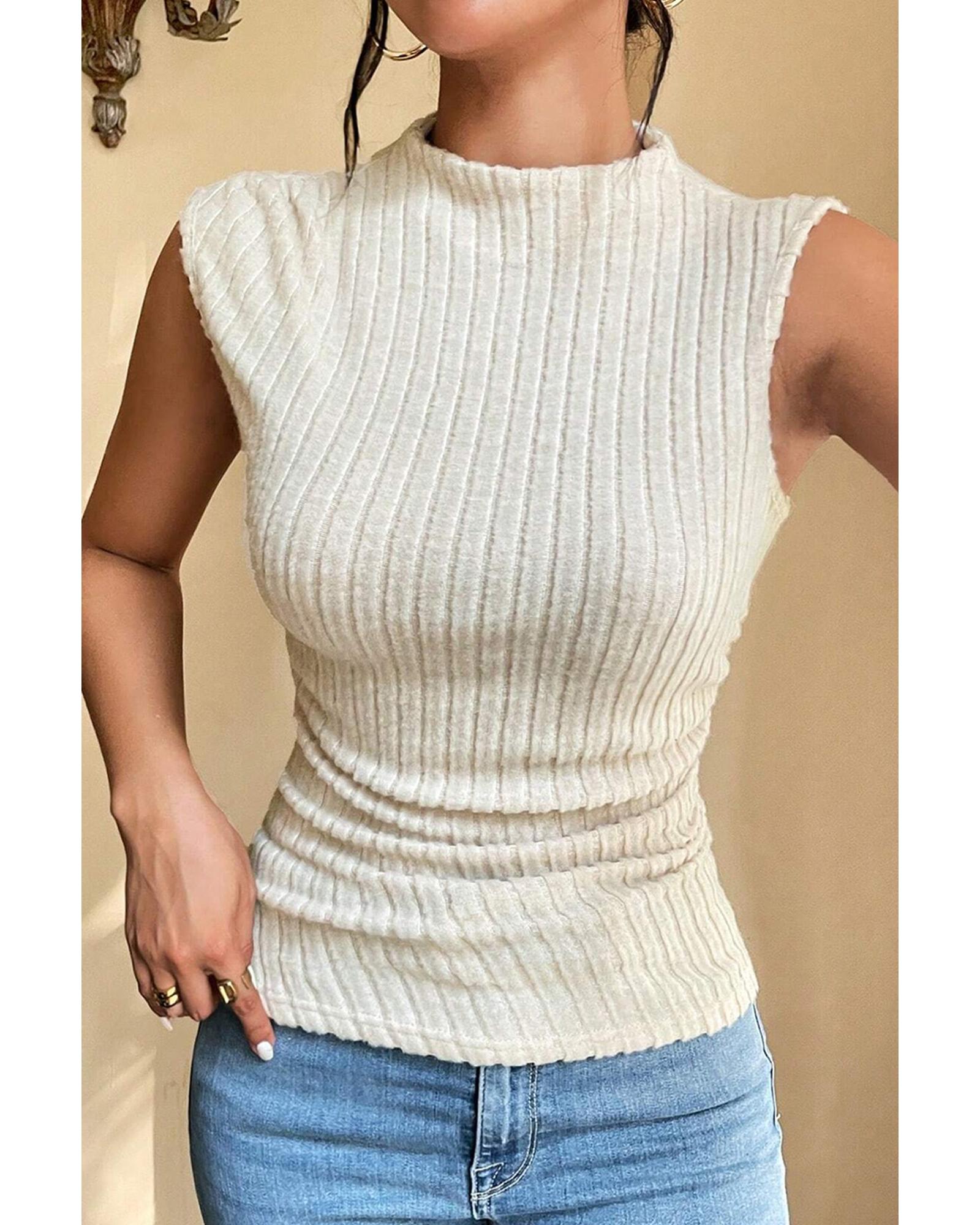 Apricot Ribbed Knit Mock Neck Tank Top – XL