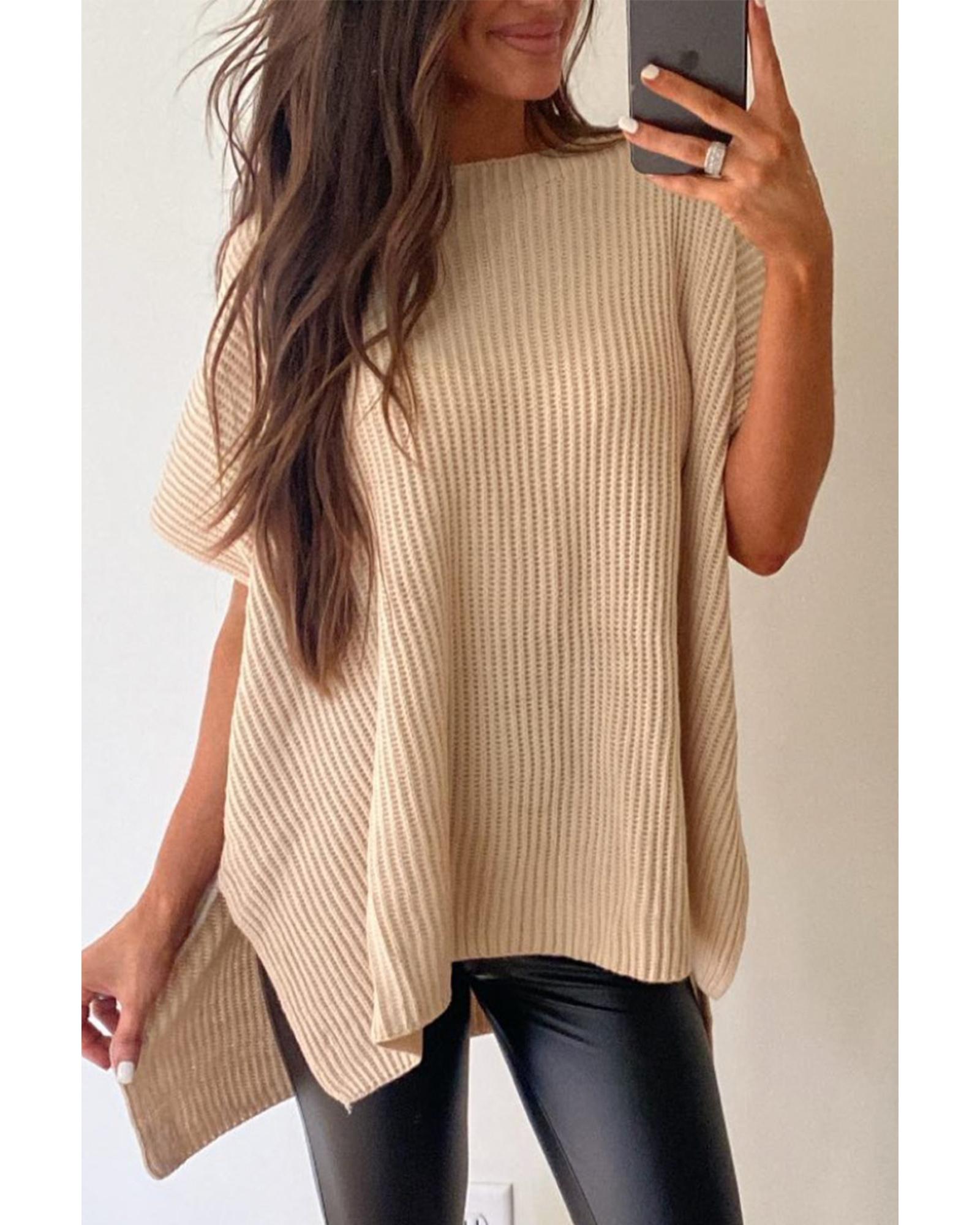 Apricot Short Sleeve Side Slit Oversized Sweater – S
