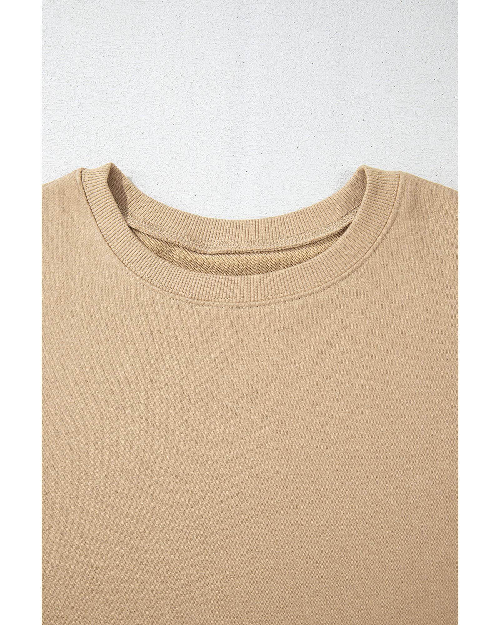 Apricot Solid Crew Neck Drop Shoulder Plus Size Sweatshirt - 2X