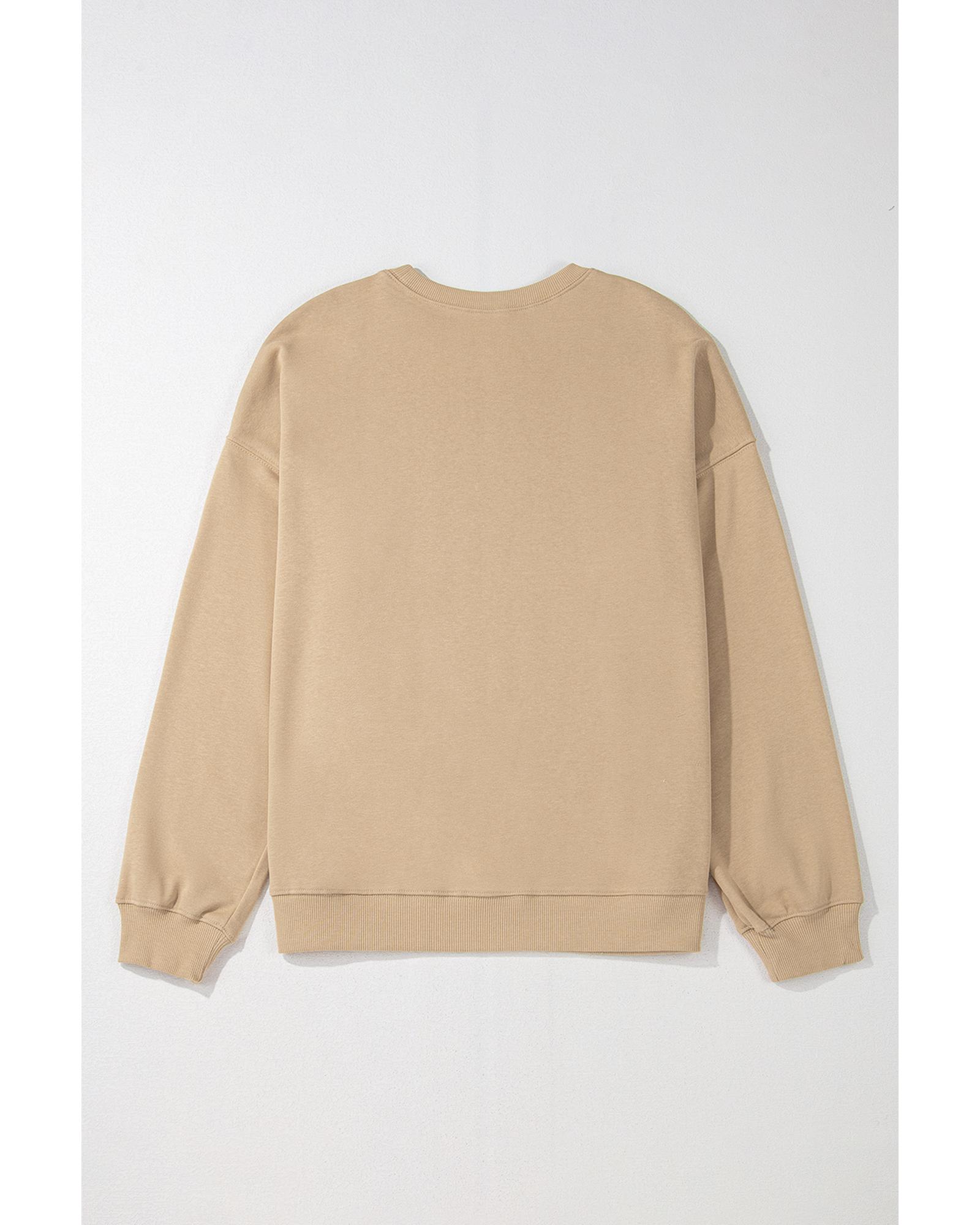 Apricot Solid Crew Neck Drop Shoulder Plus Size Sweatshirt - 4X