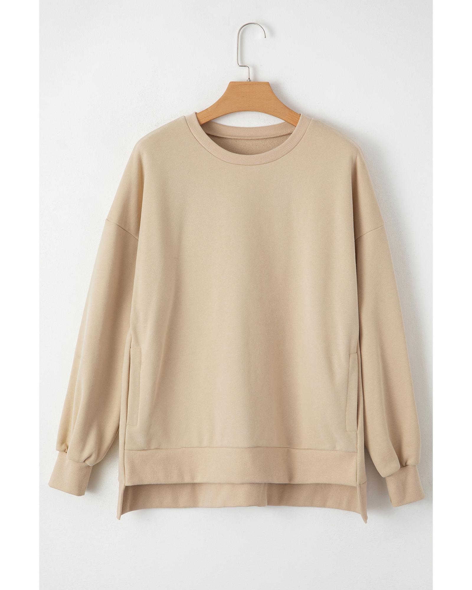 Apricot Solid Fleece Lined Drop Shoulder High Low Sweatshirt – XL