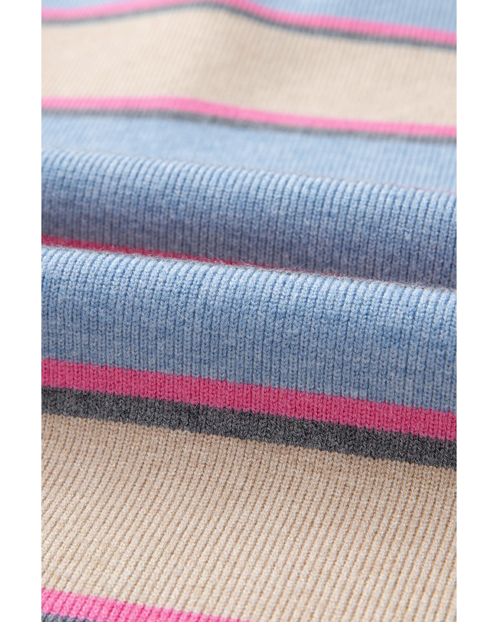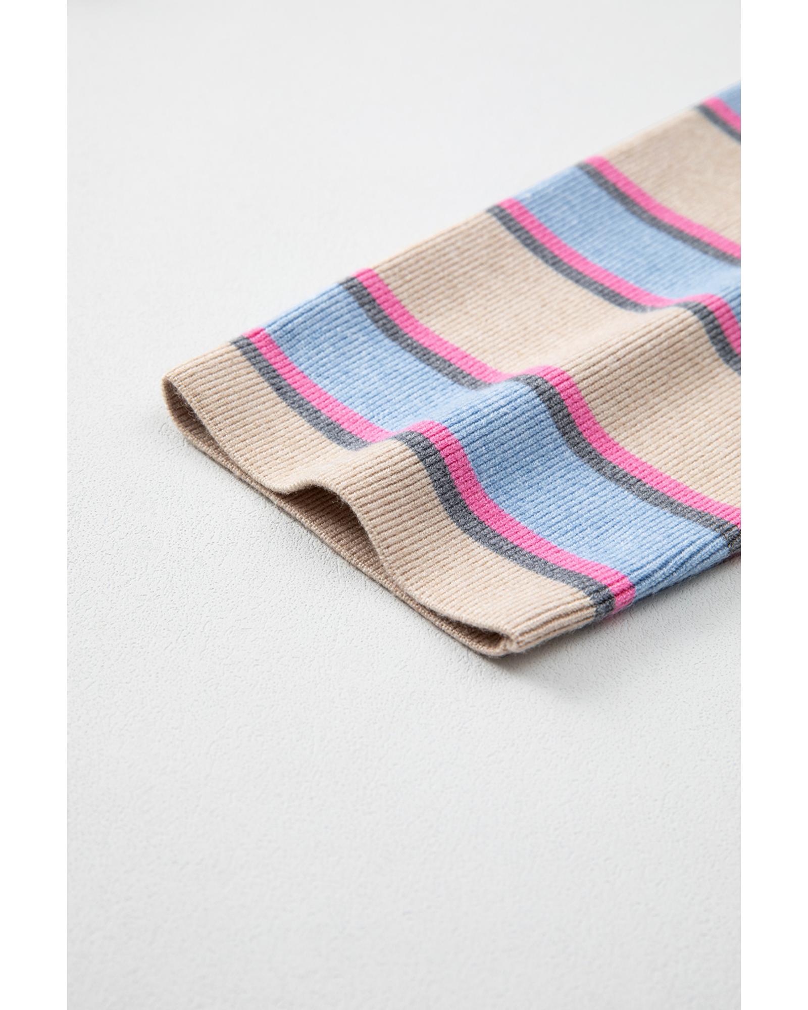 Apricot Stripe Collared V Neck Drop Shoulder Loose Sweater – M