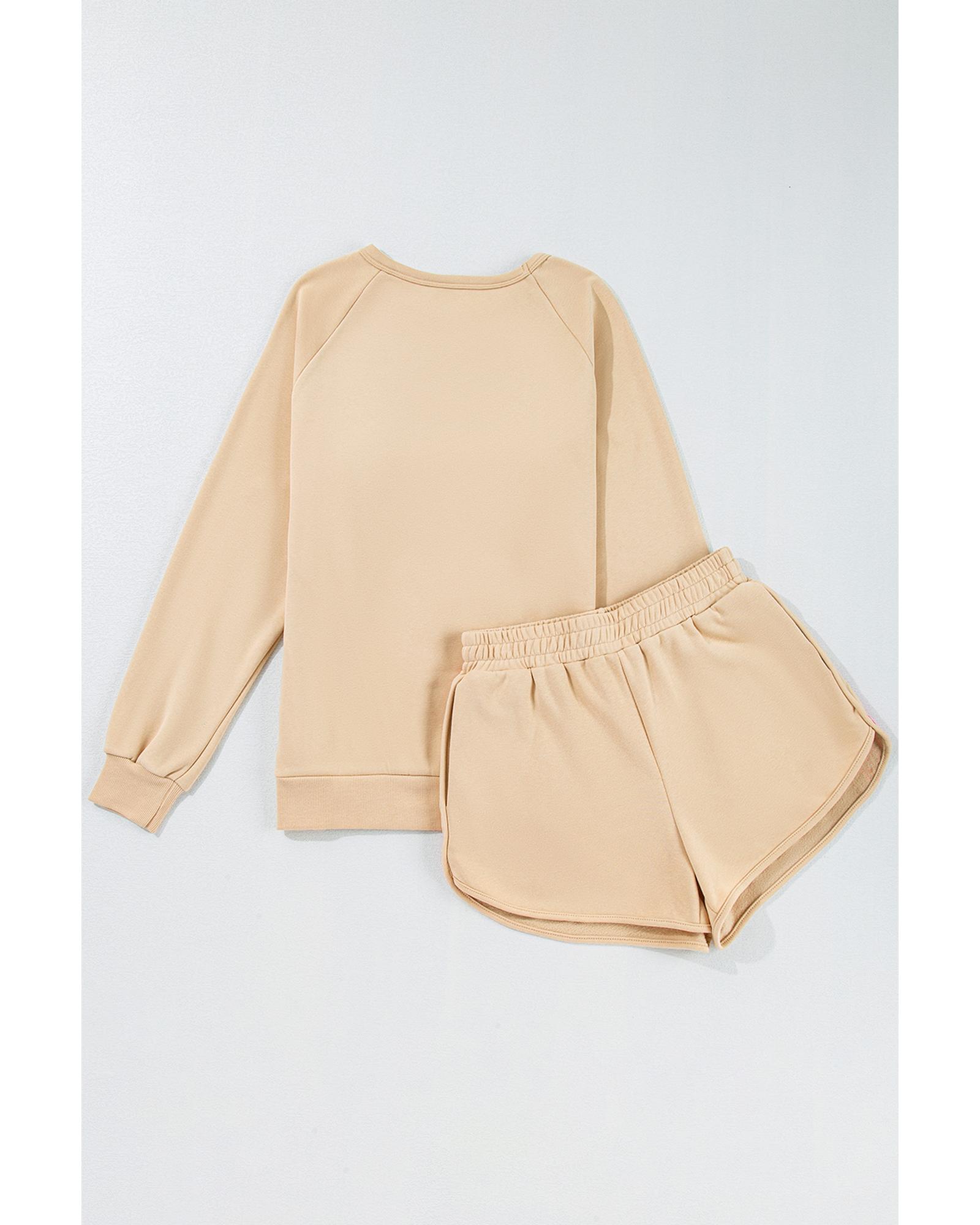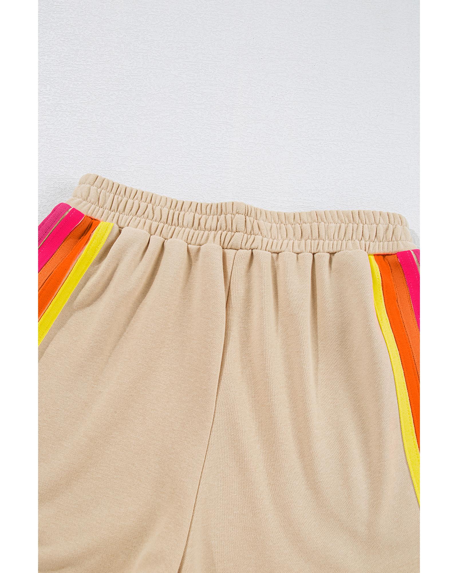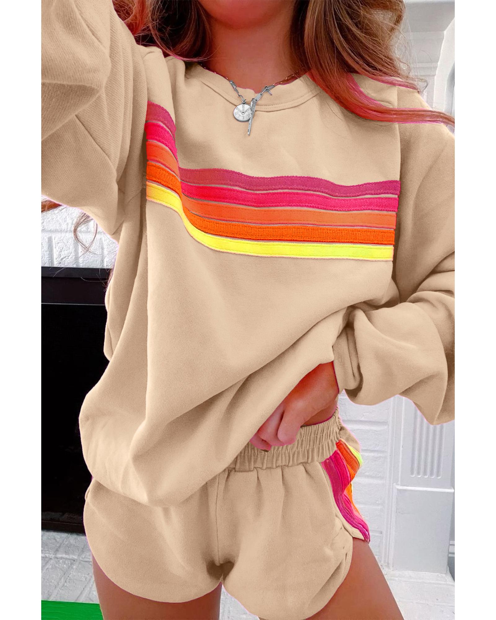 Apricot Striped Accent Pullover and Shorts Two Piece Casual Set – L