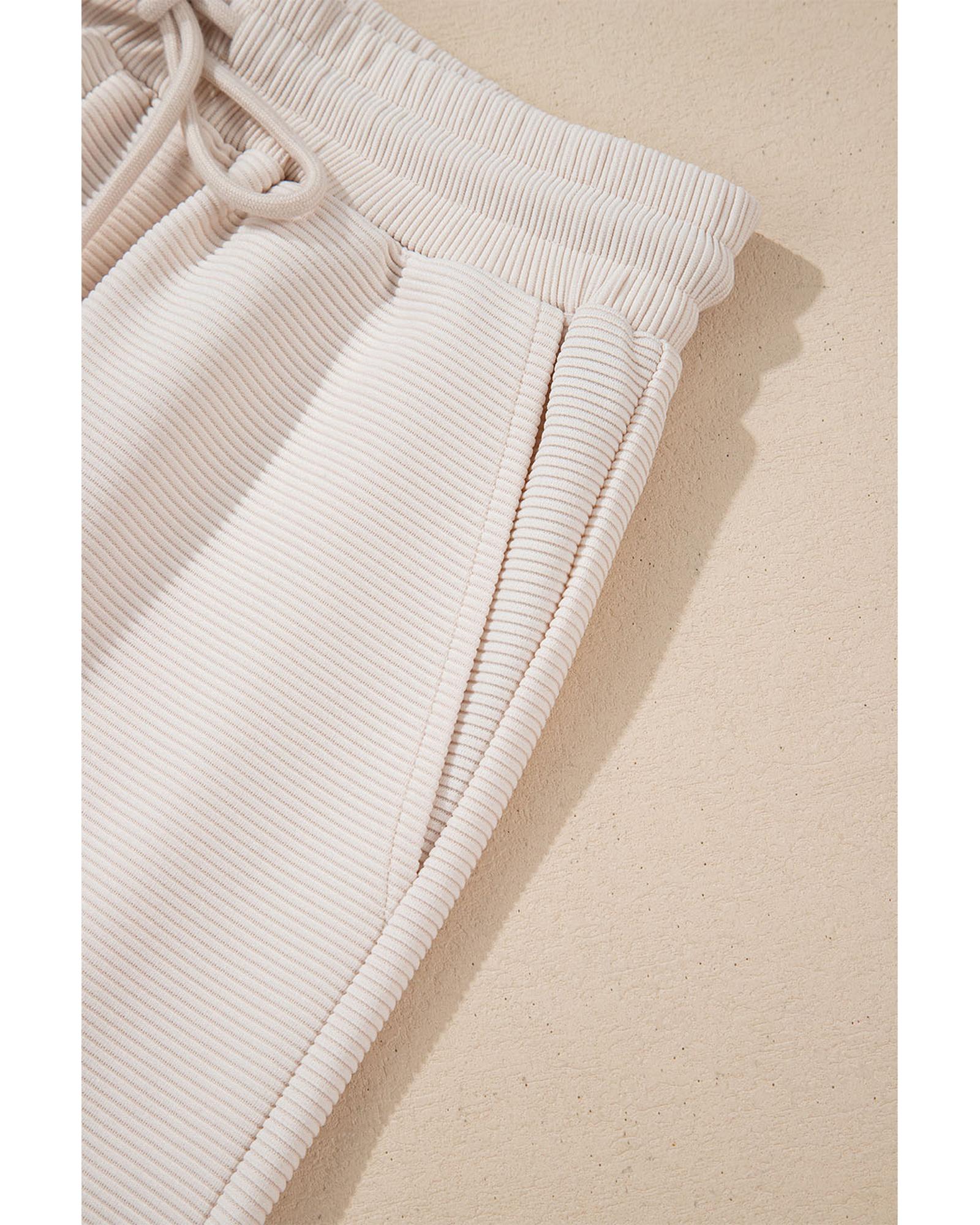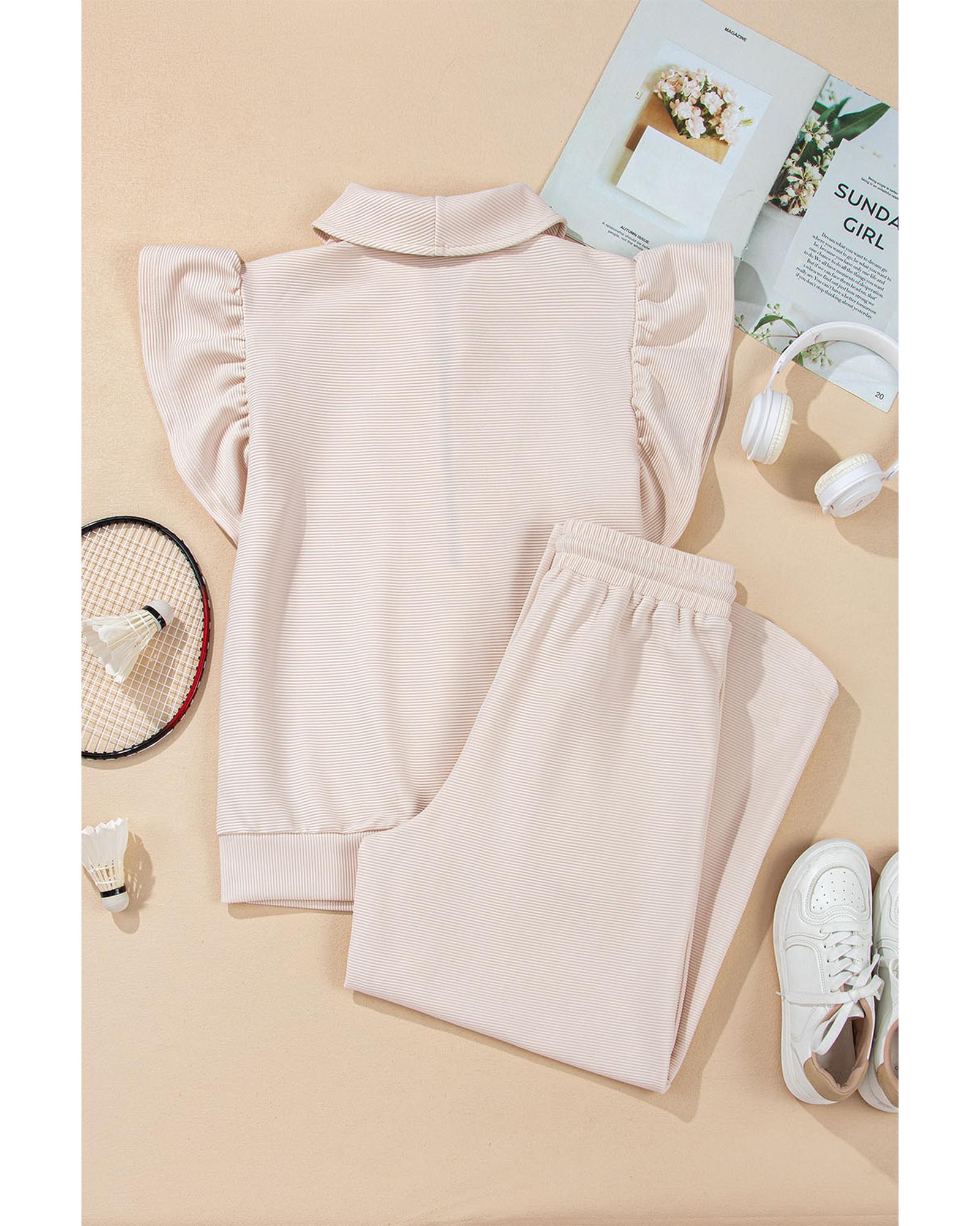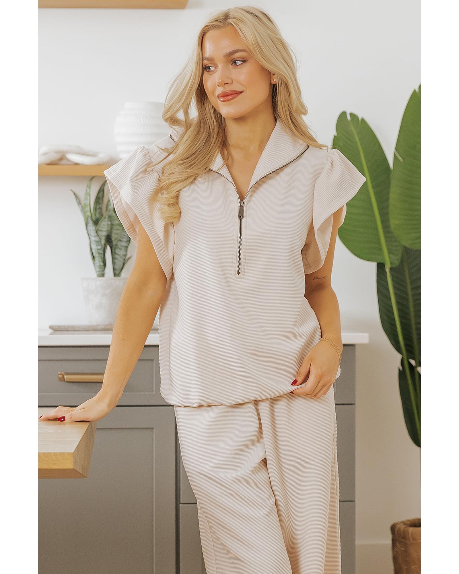 Apricot Textured Ruffled Sleeve Zipped Top and Wide Leg Pants Set – XL