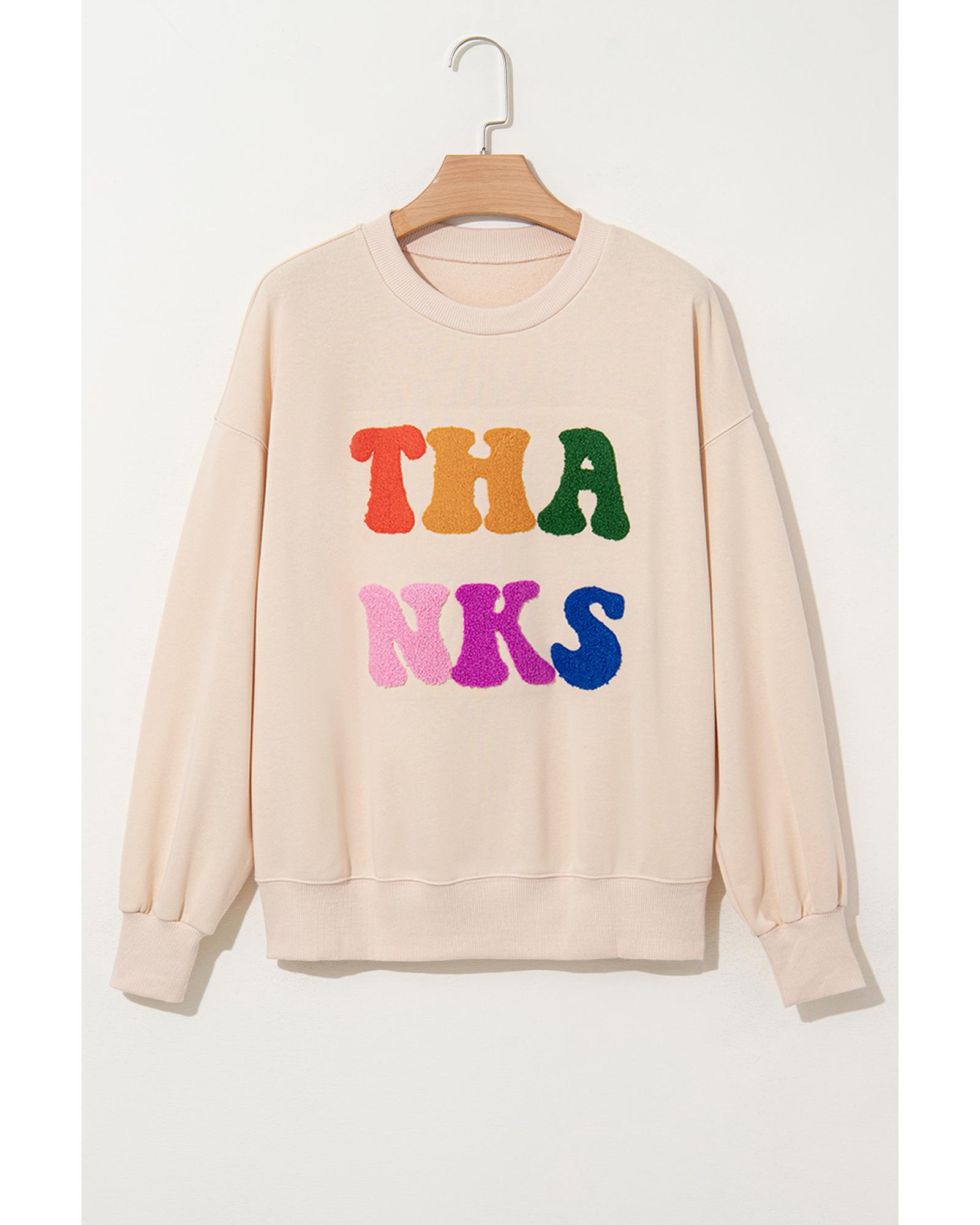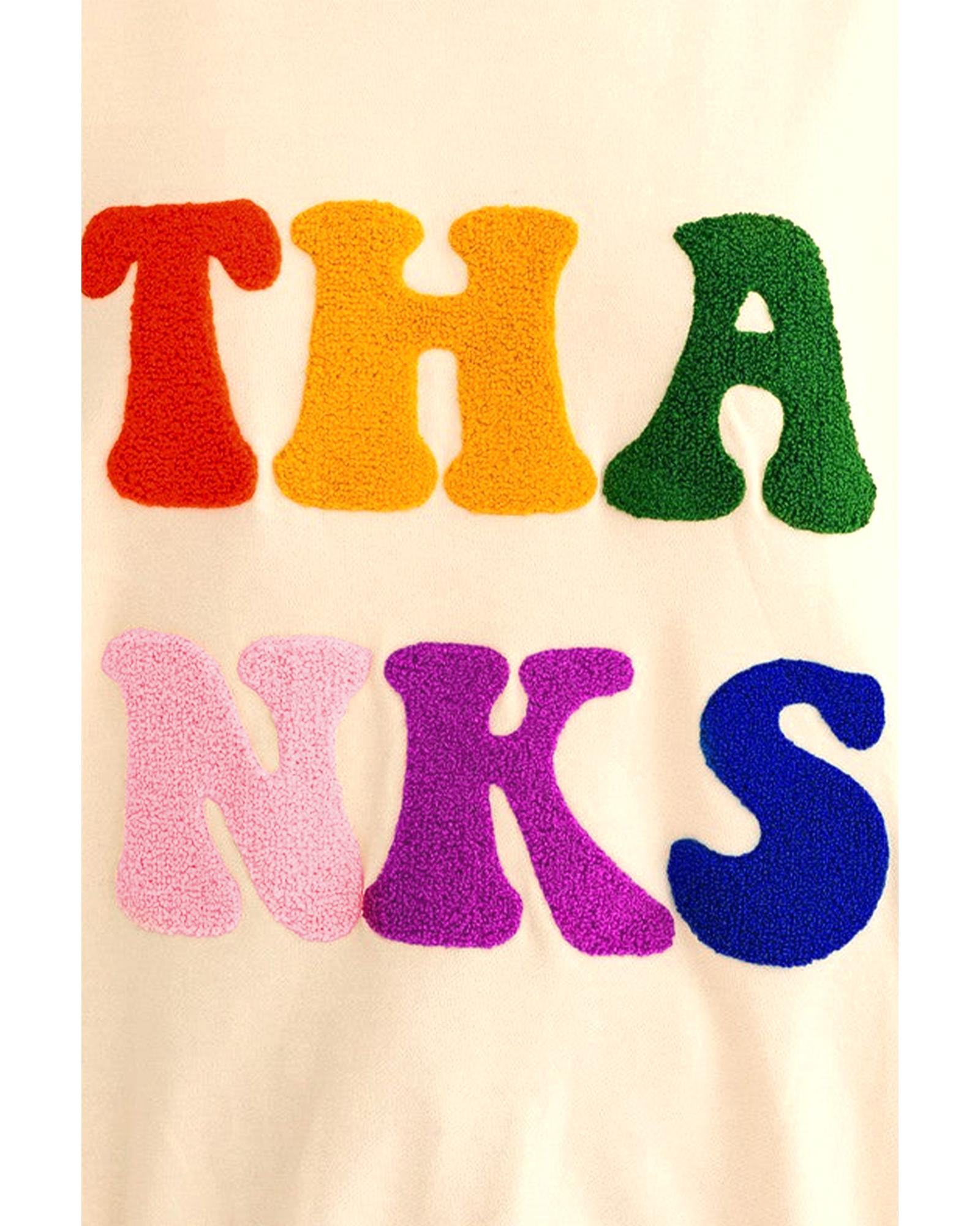 Apricot THANKS Chenille Embroidered Drop Shoulder Graphic Sweatshirt – M