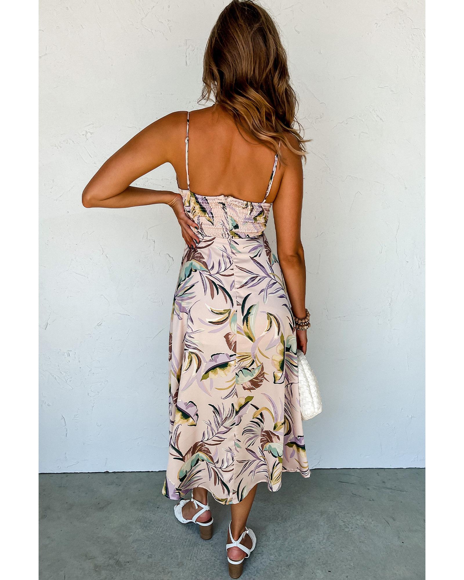 Apricot Tropical Print Spaghetti Straps Cupped Dress – XL