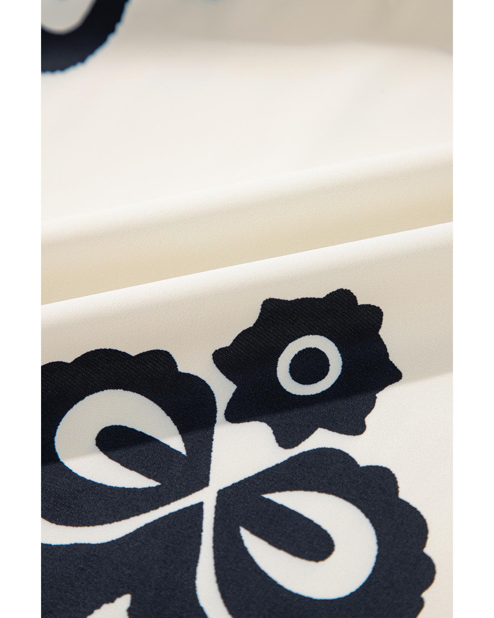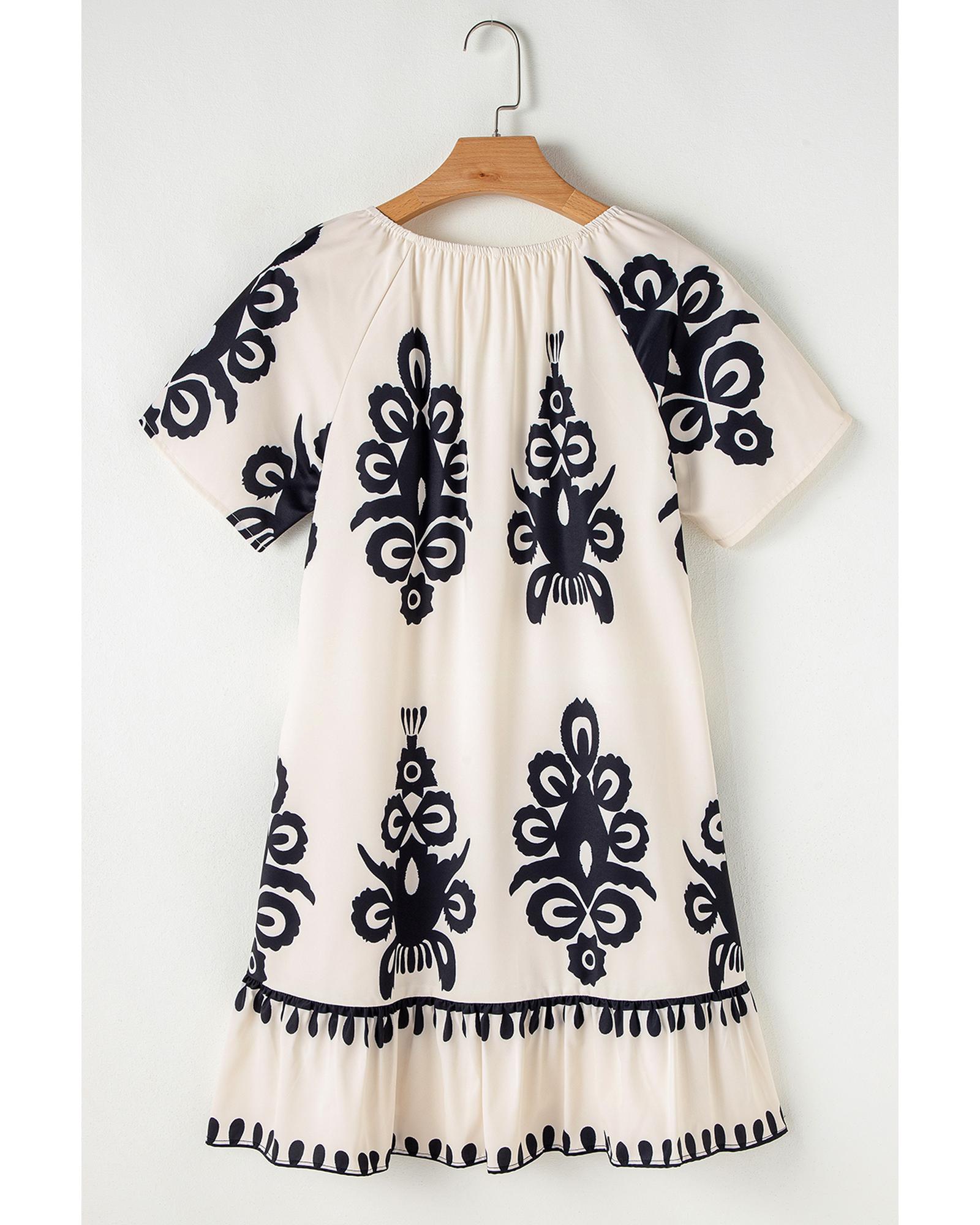 Apricot Western Print Ruffled Short Sleeve Loose Dress – M