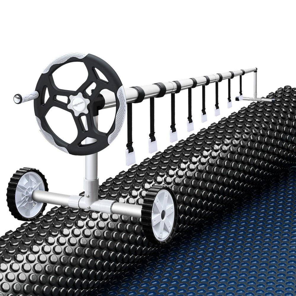 Keep your pool clean from debris and warm from the power of the sun with Aquabuddy’s Aluminium Pool Roller and 6.5m x3m Pool Cover. Made of sturdy aluminium construction with full adjustability, this pool roller is suitable for pool cover with a width between 2.4m-5.55m. It is equipped with premium anodized aluminium alloy telescopic poles, plastic wheels for maximum portability, and a low friction crank wheel to easily roll up your pool cover and get right in the water. The solar pool cover is made from premium low-density 600 micron polyethylene, which makes it extremely durable. The blue top and black underside allow the sun’s rays to penetrate the pool, increasing the temperature and significantly reducing water evaporation. Finally, the cover keeps the pool water clean all year round, reducing the time spent maintaining the water, pumps and filters. Get the best of natural resources and save money on chemicals and water; get yourself an Aquabuddy Pool Roller and Cover set today!