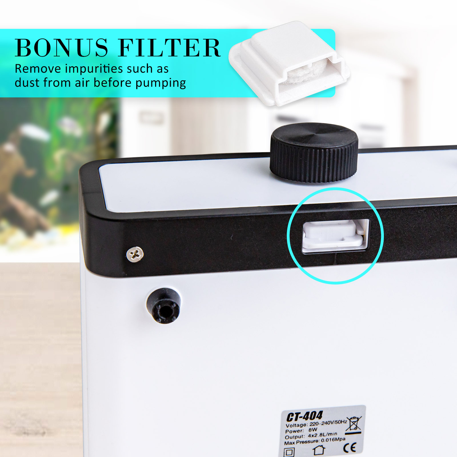• 4 outlets in order to spread the oxygen evenly in your tank