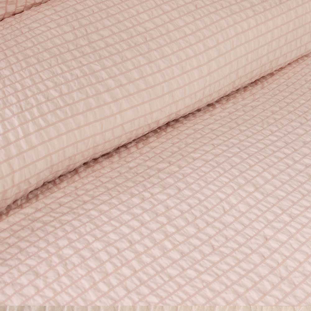 Gentle blush hues and small seersucker stripes create our elegant Ingrid Blush Seersucker Stripe Quilt Cover Set by Ardor. This subtle textured design will add small accents of details to your interior this season. It is made from quality and soft touch Polyester fabric with easy care properties.