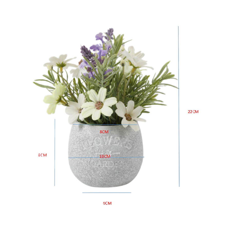 Artificial Lavender & Daisy Bunch in Grey Pot 22cm