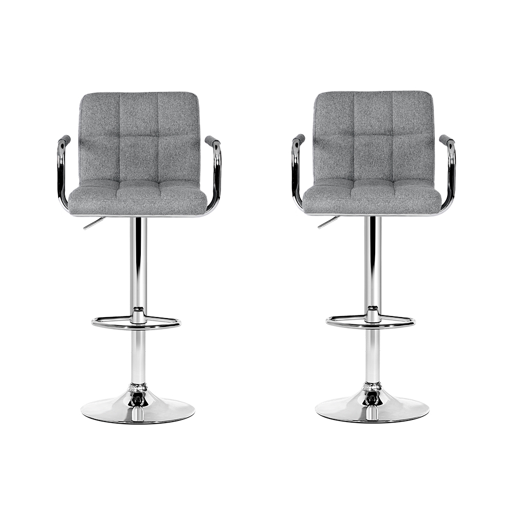 Artiss 2x Bar Stools Fabric Gas Lift w/Armrest Grey