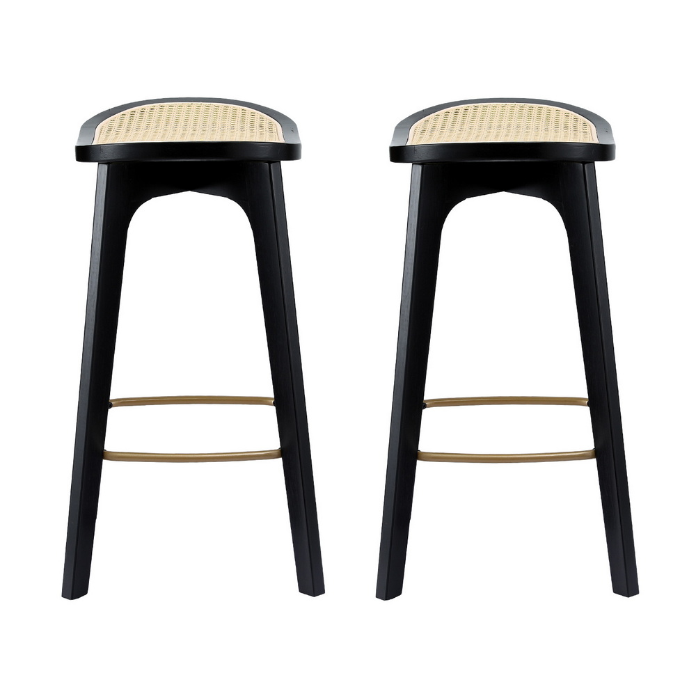 Artiss 2x Bar Stools Rattan Counter Kitchen Dinning Chair Bamboo Saddle Black