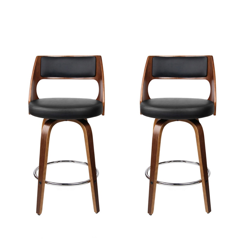 Meticulously crafted with solid wood in a stunning walnut finish for the legs, these stools feature a large faux leather seat and backrest that feel so sleek and comfortable. The mid-height backrest provides support while the anti-slip rubber pads at the bottom of the legs stop your floor from being scratched.