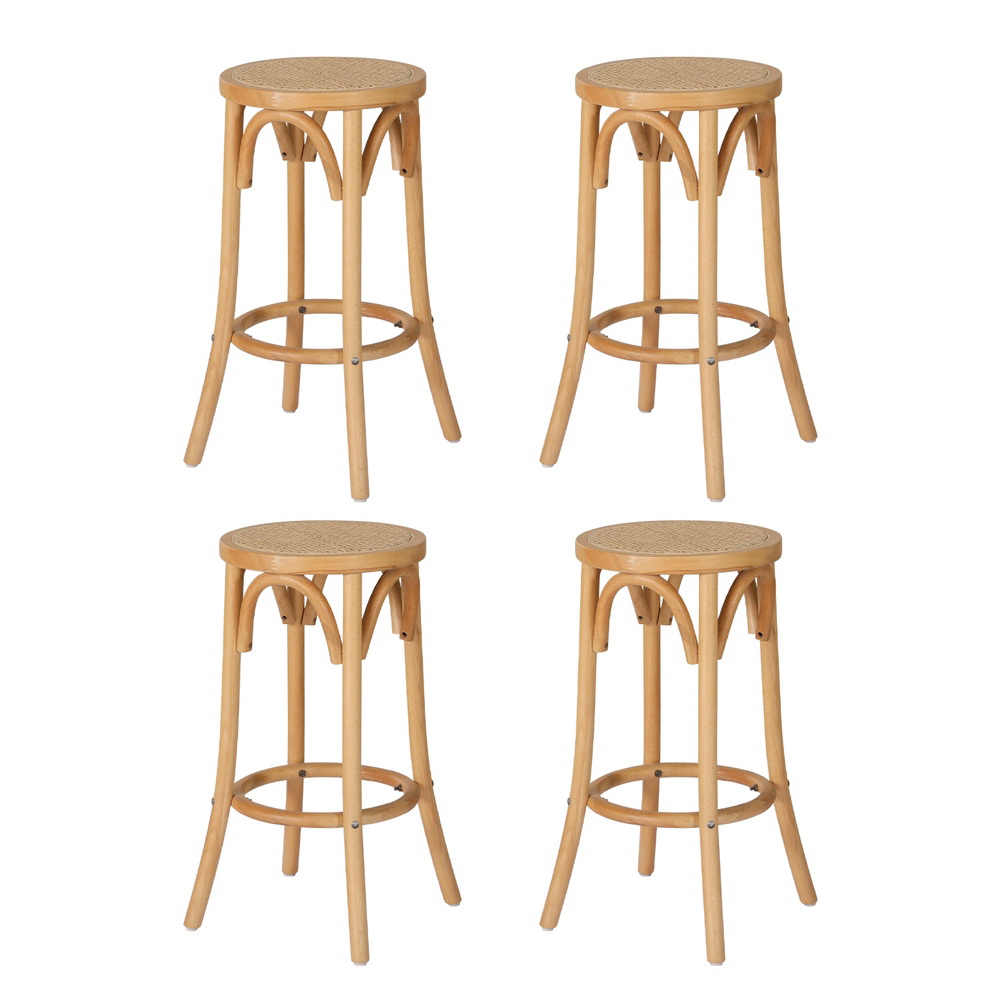 Artiss 4x Bar Stoosl Rattan Seat Wooden