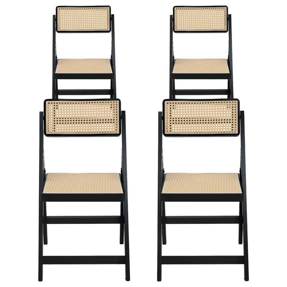 Artiss 4x Dining Chairs Wooden Rattan Foldable Black