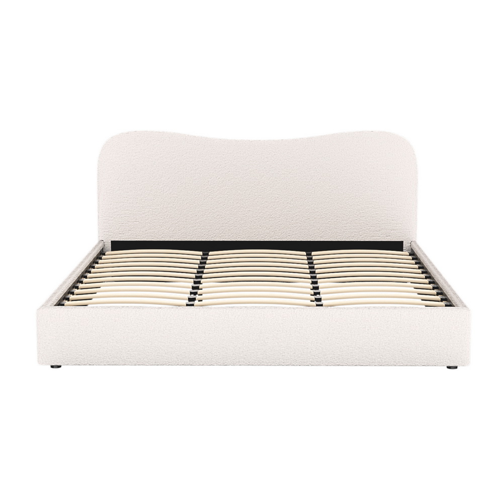 Introducing our elegant Artiss bed frame: upholstered in boucle fabric, featuring wooden frame with slat support, padded headboard, smooth edge finish, and sturdy metal connectors for a blend of style and functionality in your bedroom.