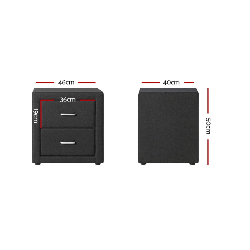 Artiss Bedside Table 2 Drawers Fabric – CADEN Charcoal