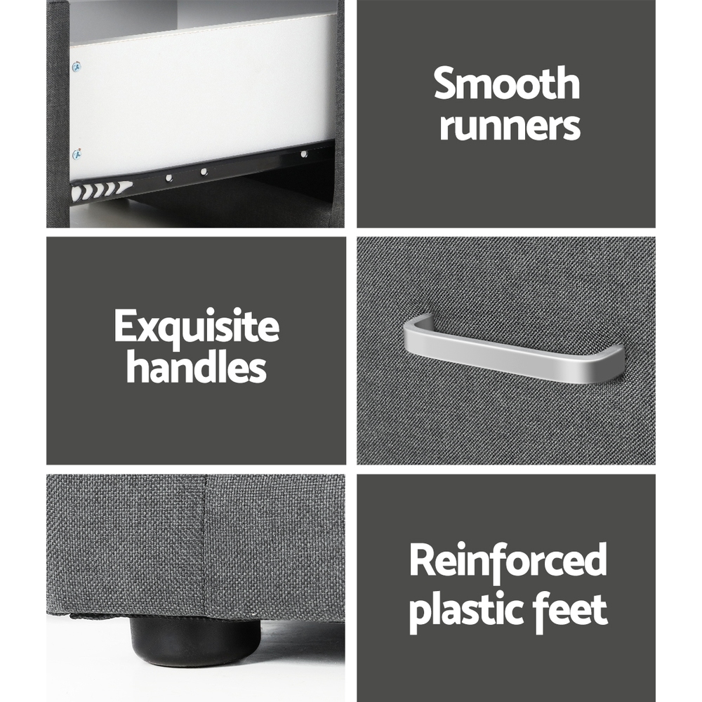 Artiss Bedside Table 2 Drawers Fabric – CADEN Grey