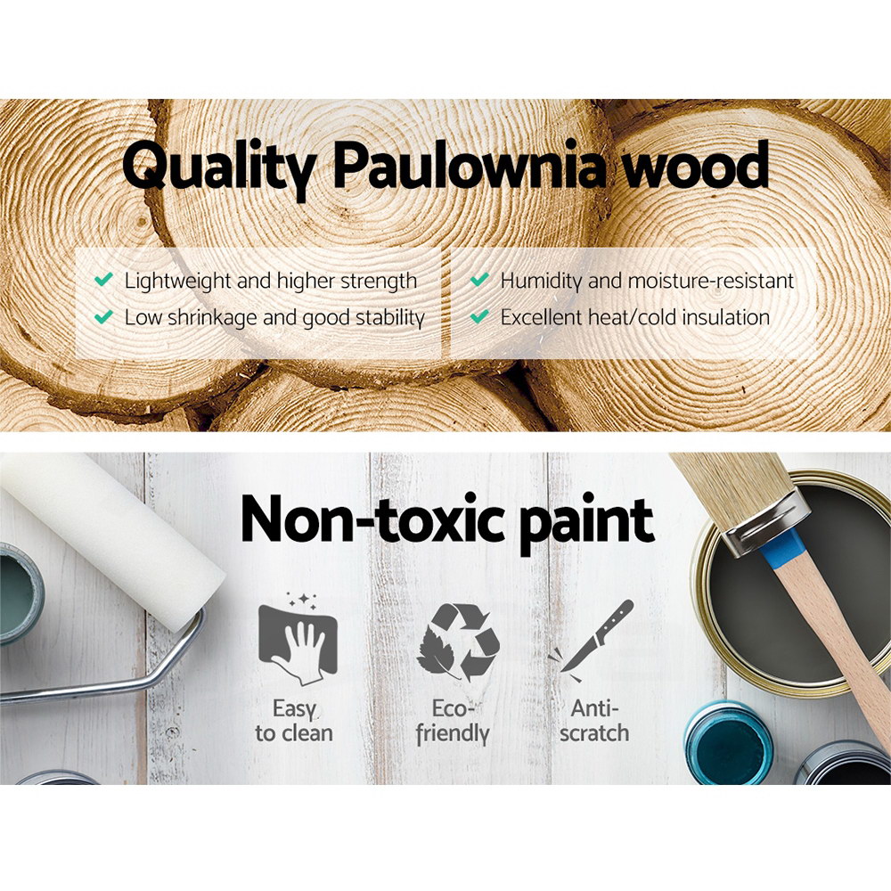 With its charming retro appeal and curved accents, our Artiss 3-drawer Storage Cabinet exudes timeless elegance all over. The three deep drawers with vintage metal handles provide ample space for practical storage and are anti-slip.. Crafted from solid Paulownia wood, the cabinet is stable and durable and features round corners for safe use and anti-scratch feet pads to keep floors and surfaces pristine even with robust use. Best of all, the cabinet comes fully assembled and a wall mount is included as an extra safety measure.